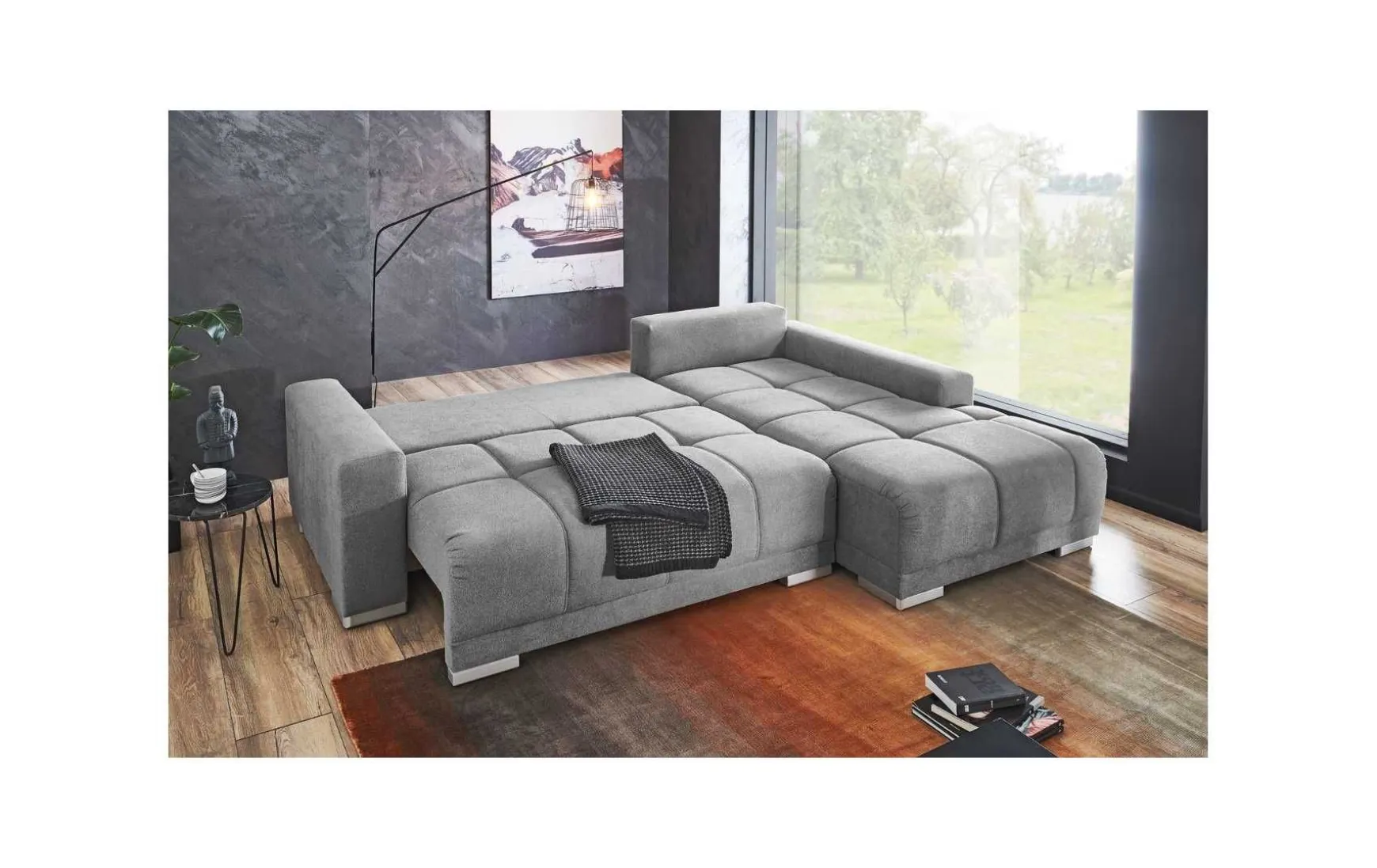 Das Ecksofa mit Schlaffunktion garantiert Ihnen viel Platz zum entspannen. Wenn Sie ein Möbelstück kaufen möchten, das eine Oase der optimalen Entspannung ist, wird das moderne Ecksofa eine ausgezeichnete Wahl für Sie sein. Diese Polsterecke mit Bettkasten ist ein Modell voller Werte für Ihr Interieur. Der modernistische Stil des Ecksofas besticht durch seine schlichte Form. Das Ecksofa kann auf der rechten oder linken Seite verwendet werden.