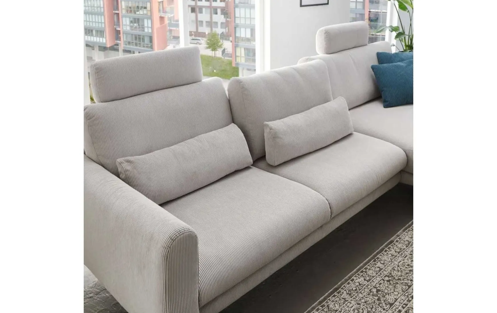 Dieses Ecksofa bietet Ihnen höchsten Komfort sowie vielseitige Funktionen. Mit seiner legeren Polsterung und der praktischen Sitztiefenverstellung passt sich das Sofa mit Stoffbezug optimal an Ihre individuellen Bedürfnisse an. Die motorische Relaxfunktion im Canapé ermöglicht entspanntes Zurücklehnen auf Knopfdruck und sorgt für maximale Erholung im Alltag. Optional lässt sich das Sofa durch eine Armteilverstellung sowie eine Kopfstütze erweitern, um den Sitzkomfort noch weiter zu individualisieren. Die moderne Fußausführung aus Metall unterstreicht das zeitgemäße Design und sorgt für einen stabilen Stand. Das Ecksofa mit Relaxfunktion ist in verschiedenen Stoffen und Farben erhältlich und fügt sich somit harmonisch in jedes Wohnambiente ein. Auch unterschiedliche Fußausführungen stehen zur Auswahl, sodass das Sofa perfekt an Ihren persönlichen Stil angepasst werden kann. Hochwertige Materialien, sorgfältige Verarbeitung und durchdachte Funktionen stehen dabei stets im Mittelpunkt. Dank der Kombination aus Komfort, Flexibilität und Qualität ist dieses Ecksofa die ideale Wahl für Ihr Wohnzimmer. Besonders die Sitztiefenverstellung und die motorische Relaxfunktion werden Sie bei jedem Hinsetzen aufs Neue zu schätzen wissen. Zögern Sie nicht länger und erleben Sie, wie dieses Sofa Ihren Wohnraum bereichert. Bei Fragen stehen wir Ihnen selbstverständlich gerne zur Verfügung.