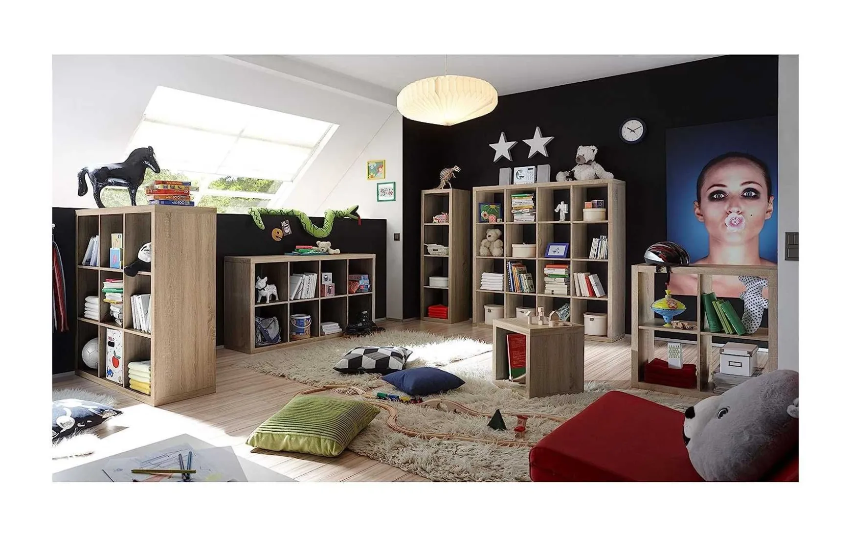 Peppen Sie Ihren Wohnraum auf und stellen dieses praktische Regal hinein. Die 8 großen Fächer können wunderbar als Stauraum genutzt werden, während auch obendrauf genügend Platz ist. Oder nutzen Sie das Regal als Raumteiler, um beispielsweise den Ess- und Wohnbereich voneinander zu trennen.