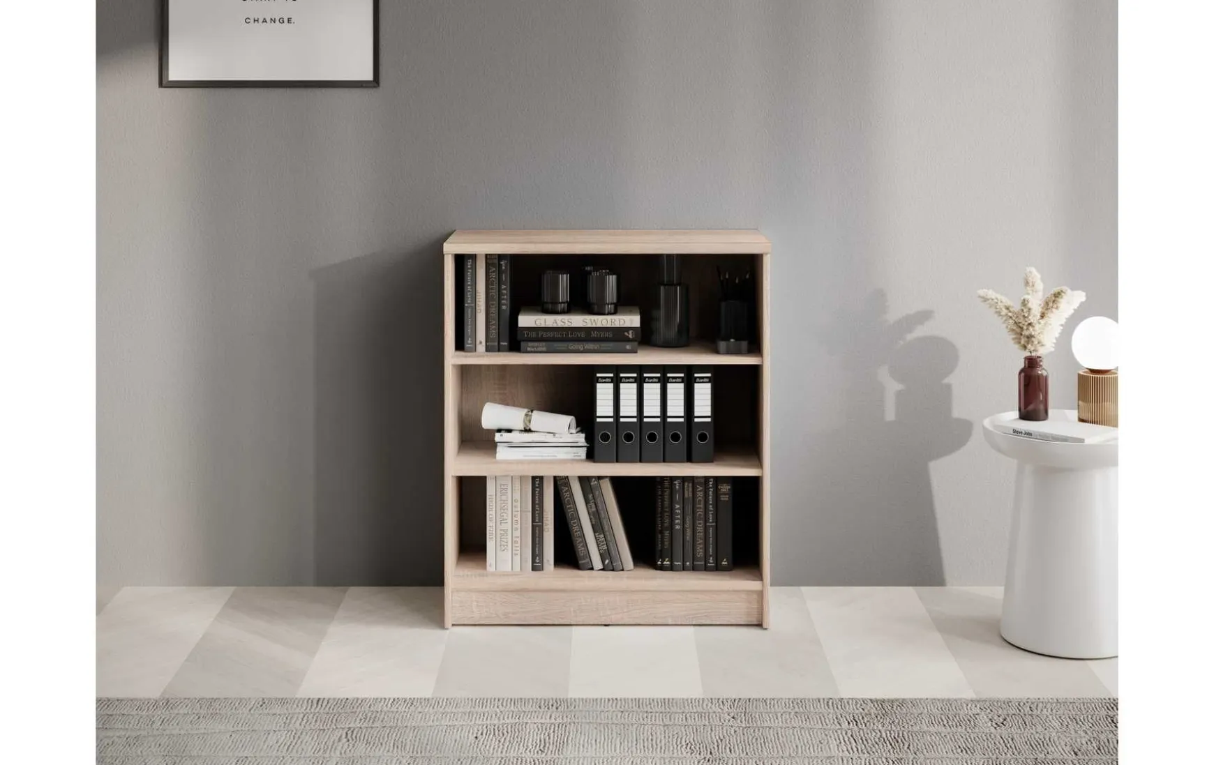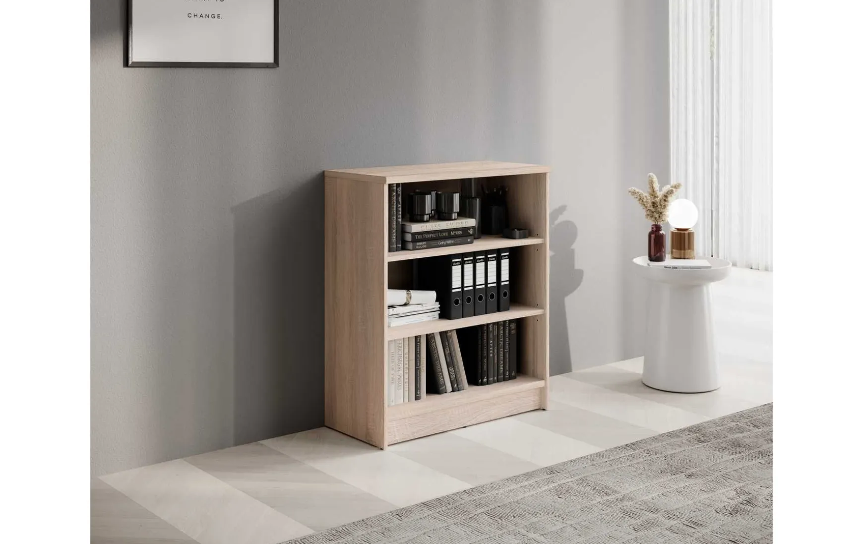 Das Regal in Eiche Sonoma Dekor überzeugt durch sein funktionales und modernes Design und passt ideal in Wohnzimmer, Büro oder Schlafzimmer. Der Korpus aus Holzwerkstoff mit Dekorfolie sorgt für eine pflegeleichte und robuste Oberfläche. Mit 3 offenen Fächern bietet das Regal praktischen Stauraum für Bücher, Ordner oder Dekoration. Dank seiner Maße von ca. 72 × 86 × 34 cm (B/H/T) ist es kompakt und vielseitig einsetzbar. Zur Reinigung genügt ein trockenes Staubtuch, auf lösungsmittelhaltige oder scheuernde Reinigungsmittel sollte verzichtet werden. Das Regal wird zerlegt geliefert, Dekoration ist nicht im Preis enthalten.