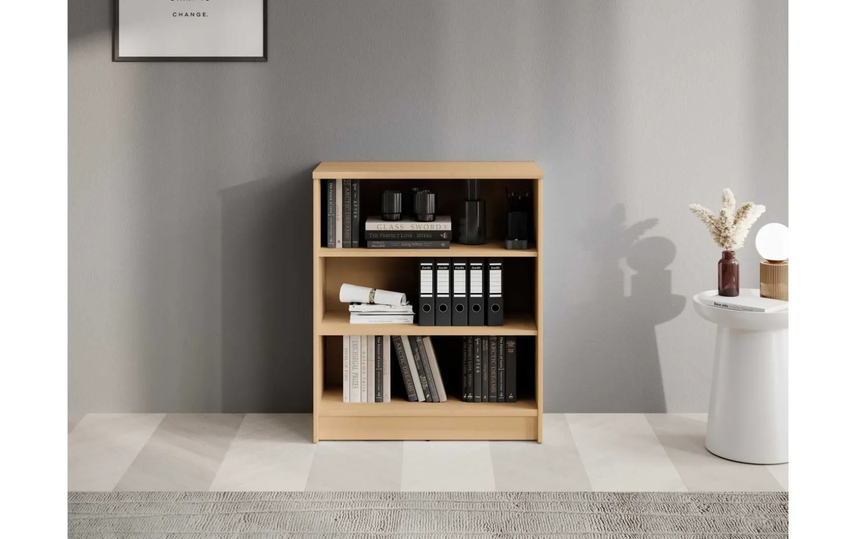 Das Regal in Buche Dekor überzeugt durch sein funktionales und modernes Design und passt ideal in Wohnzimmer, Büro oder Schlafzimmer. Der Korpus aus Holzwerkstoff mit Dekorfolie sorgt für eine pflegeleichte und robuste Oberfläche. Mit 3 offenen Fächern bietet das Regal praktischen Stauraum für Bücher, Ordner oder Dekoration. Dank seiner Maße von ca. 72 × 86 × 34 cm (B/H/T) ist es kompakt und vielseitig einsetzbar. Zur Reinigung genügt ein trockenes Staubtuch, auf lösungsmittelhaltige oder scheuernde Reinigungsmittel sollte verzichtet werden. Das Regal wird zerlegt geliefert, Dekoration ist nicht im Preis enthalten.