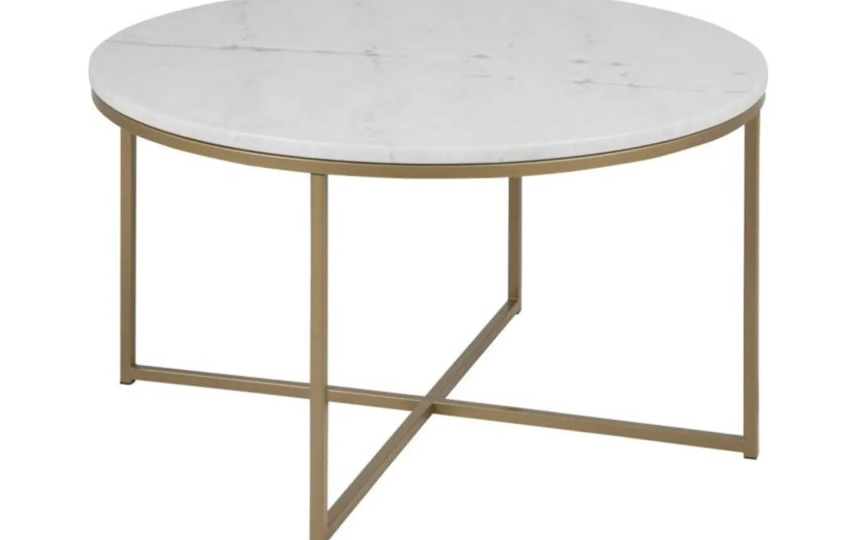 Dieser runde Couchtisch im modernen Stil ist ein eleganter Blickfang für jedes Wohnzimmer. Die hochwertige Marmor-Deckplatte in Weiß verleiht dem Tisch eine edle und zeitlose Ausstrahlung, während das goldfarbene Gestell aus Metall einen luxuriösen Akzent setzt. Durch seine harmonische, runde Form fügt sich der Couchtisch stilvoll in unterschiedliche Wohnkonzepte ein und bietet gleichzeitig eine stabile und langlebige Ablagefläche.