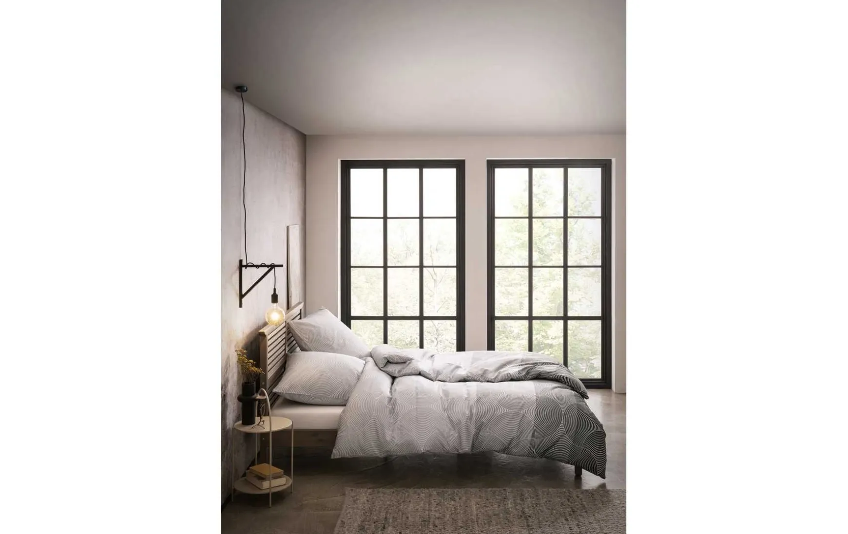 Diese Bettwäsche von Bugatti besticht durch die ruhige Wirkung des grafischen Designs.
