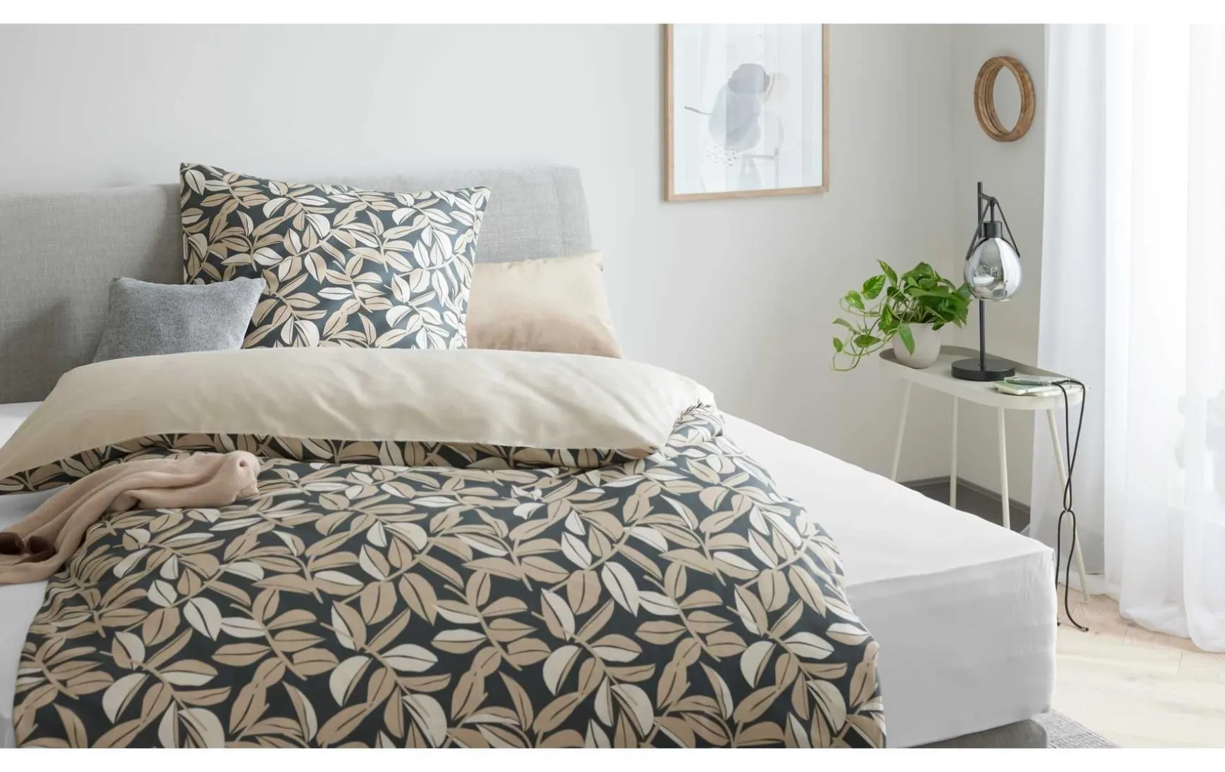 Das Wende-Design bringt stilvolle Abwechslung: Auf der einen Seite zeigt sich ein anthrazitfarben florales Muster auf beigem Grund, die Rückseite überzeugt mit feinem Beige. So kannst du dein Bett jederzeit neu inszenieren.