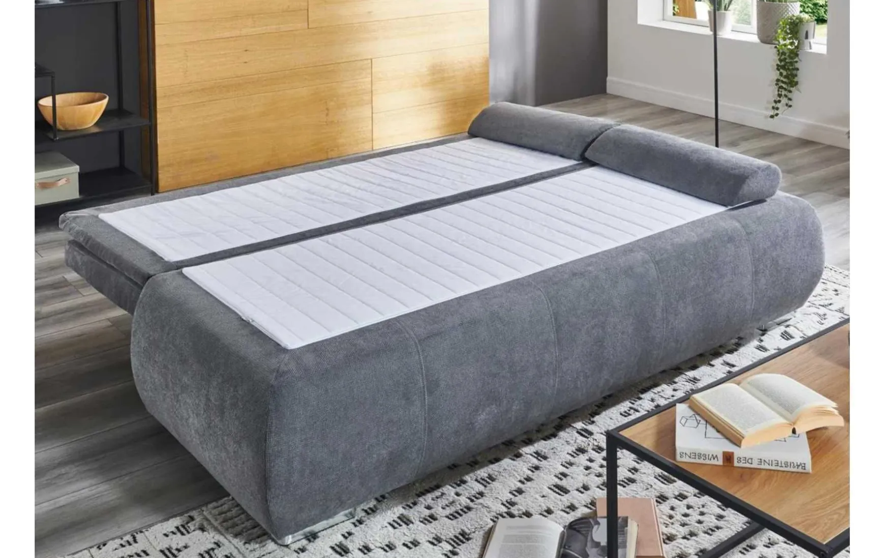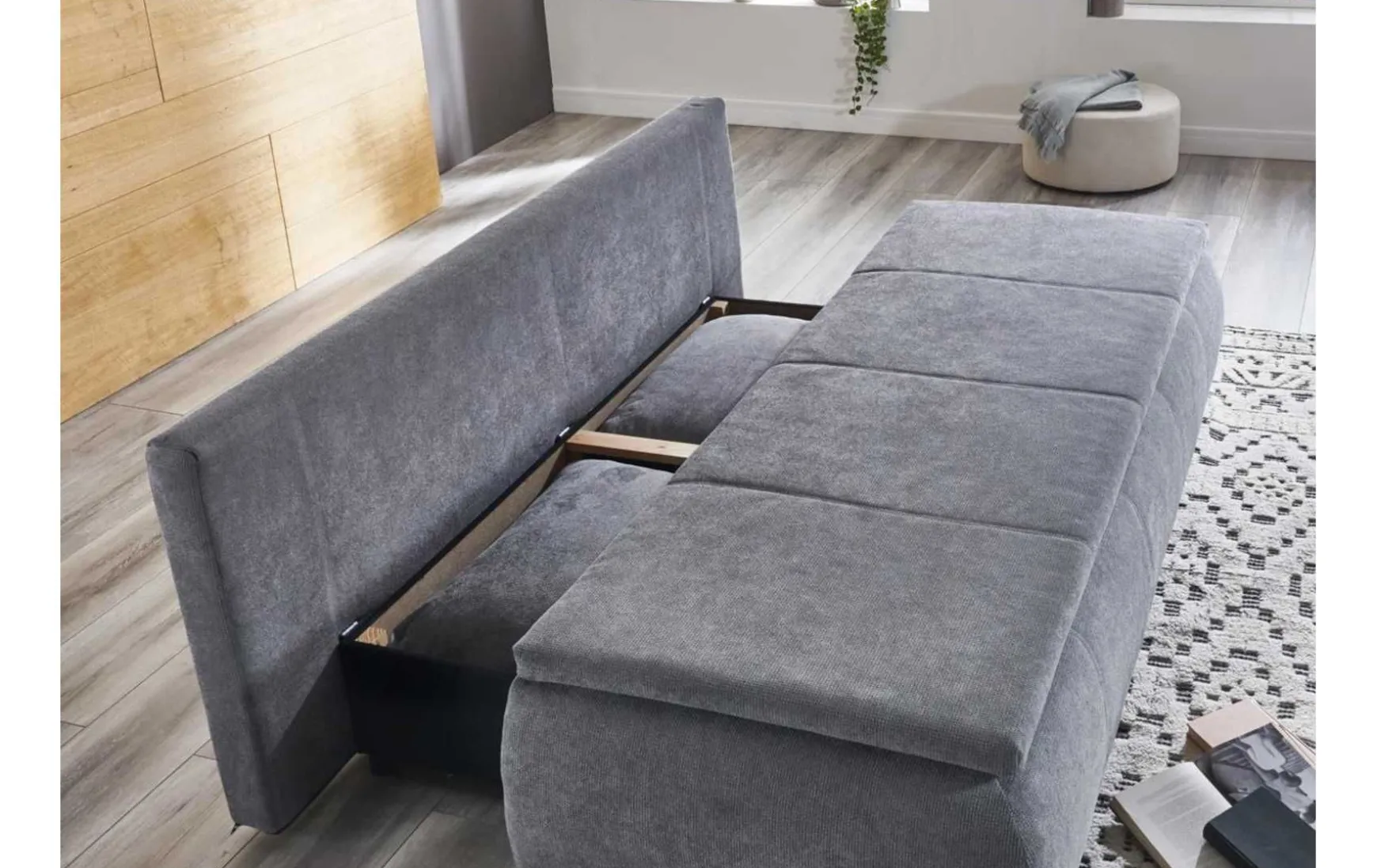 Dieses Schlafsofa in Stoff grau ist eine stilvolle und praktische Lösung für jeden Raum. Dank des hochwertigen Federkerns und der Komfortschaumpolsterung bietet das Sofa hervorragenden Sitz- und Liegekomfort. Mit einer Liegefläche von 146×202 cm bietet es genug Platz für eine oder zwei Personen. Das Sofa verfügt über einen integrierten Stauraum, der dank des Federsystems besonders einfach zu öffnen ist. Die Rückenlehne lässt sich klappen, und die Sitzfläche kann als Topper ausgeklappt werden, um einen zusätzlichen Schlafplatz zu schaffen. Die zeitlose graue Stoffpolsterung macht das Schlafsofa zu einem eleganten und bequemen Möbelstück für jedes Zuhause und ist eine praktische Lösung für Übernachtungsgäste.