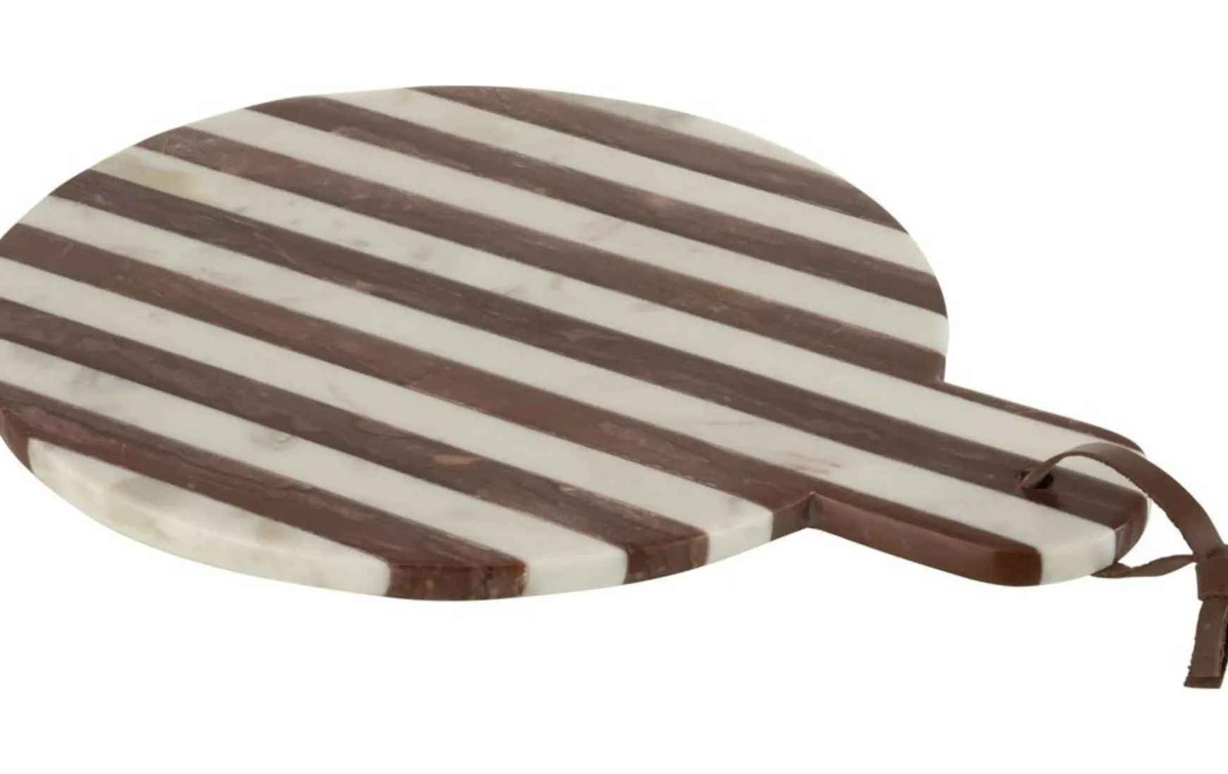 Dieses hochwertige Schneidebrett aus Marmor vereint Funktionalität und elegantes Design. Die rundgestreifte Maserung in Weiß und Braun macht es zu einem stilvollen Blickfang in jeder Küche. Dank des robusten Steinmaterials ist es besonders langlebig und eignet sich ideal zum Schneiden, Servieren oder als dekoratives Küchenaccessoire. Mit seinen großzügigen Maßen von 46 x 31 x 2 cm bietet es ausreichend Platz für Gemüse, Obst oder Käseplatten. Gleichzeitig ist das 3?kg schwere Brett stabil genug, um es als edles Servierbrett bei Tisch zu verwenden.