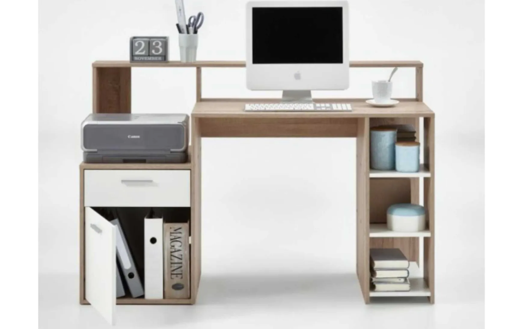 Modernes Design und nagelneu bei unserem Schreibtisch für Jugendzimmer oder Heimbüro. Der PC-Tisch verfügt über 1 grosse Schublade und 1 Türe für viel Stauraum. Leichtläufige Schubladen durch Metall-Laufschienen, stabiler Stand des Tisches, wertige Kontruktion. Widerstandsfähige Oberflächenbeschichtung.