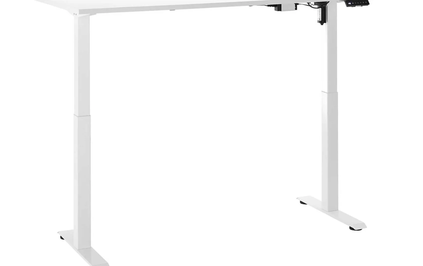 Der elektrisch höhenverstellbare Schreibtisch in Weiß kombiniert modernes Design mit ergonomischer Funktionalität und ist ideal für Büro oder Homeoffice. Die Höhe lässt sich stufenlos bis maximal ca. 117 cm anpassen, sodass sowohl Arbeiten im Sitzen als auch im Stehen möglich ist. Das stabile Metallgestell in Weiß, pulverbeschichtet, sorgt für sicheren Stand, während die weiße Tischplatte eine pflegeleichte und moderne Arbeitsfläche bietet.