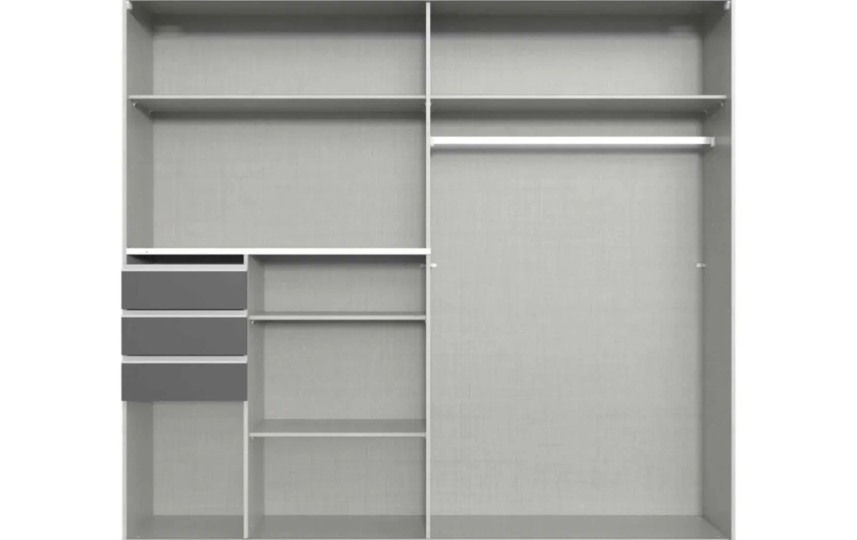 Dieser moderne Schwebetürenschrank in elegantem Saharagrau überzeugt durch großzügigen Stauraum, zeitloses Design und hochwertige Verarbeitung Made in Germany. Dank der platzsparenden Schwebetüren eignet sich der Kleiderschrank ideal auch für kleinere Schlafzimmer und sorgt gleichzeitig für eine aufgeräumte, stilvolle Optik. Im Inneren bietet der Schrank eine durchdachte Aufteilung mit einer stabilen Kleiderstange sowie vier verstellbaren Einlegeböden, die flexibel an Ihre Bedürfnisse angepasst werden können. Hochwertige Materialien und präzise Verarbeitung garantieren Langlebigkeit und Komfort im täglichen Gebrauch. Ein funktionaler und eleganter Kleiderschrank, der Ordnung und Design perfekt vereint.