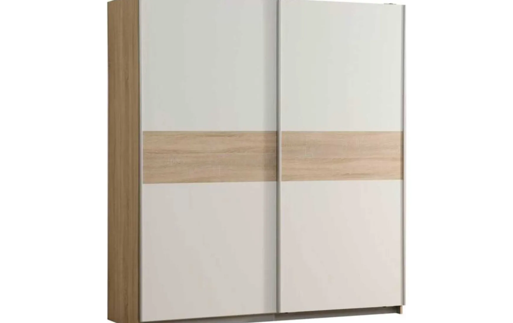 Dieser Schwebetürschrank versprüht ein modernes und dennoch zurückhaltend schönes Wohnambiente. Die Kombination aus Weiß und Sonoma Eiche Nachbildung (NB) verleihet diesem Schrank eine dezente und trendige Eleganz. Zudem verfügt dieser Schrank viel Stauraum für Kleider, Pullover, Hosen etc.