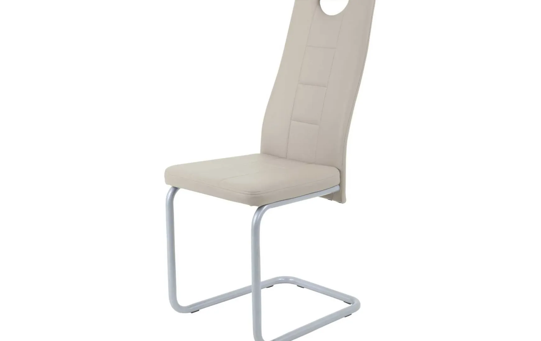 Dieser Moderne Polsterstuhl in einem Lederoptik Stoffbezug in der Farbe Cappuccino, bezaubert mit seinem elegantem Rücken. Das Gestell in Aluminium, zeugt von Stabilität. Die maximale Belastbarkeit liegt bei ca 120 kg.