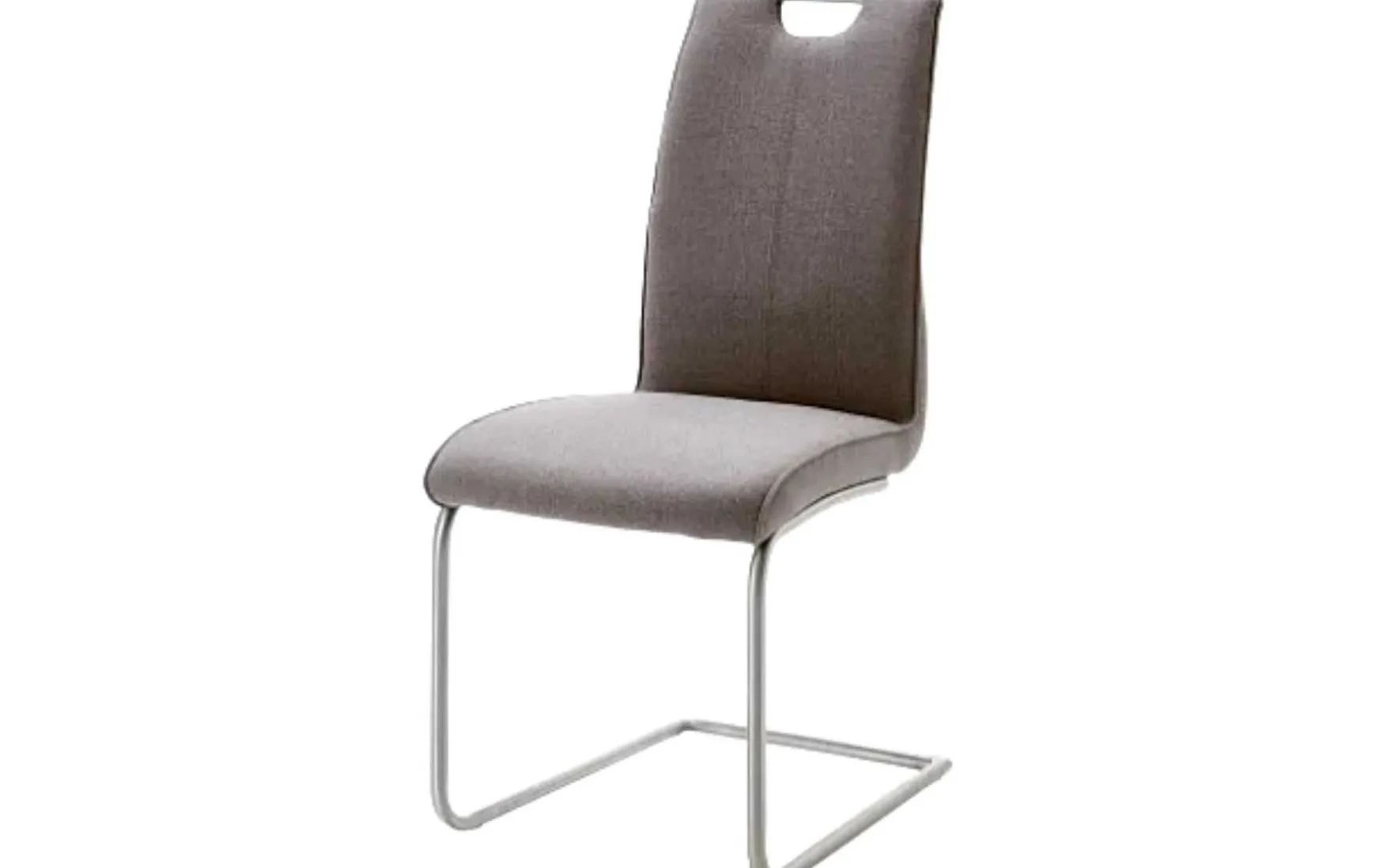 - Anmerkungen: Schwingstuhl ohne Armlehne mit Edelstahlgriff in der Rückenlehne, Gestell Rundrohr Edelstahl gebürstet, Sitzpolsterung mit Wellenfederung, Webstoff-Bezug Messina Anthrazit, 240 Material Bezug, 100% Polyester, Belastbarkeit bis maximal 140 kg