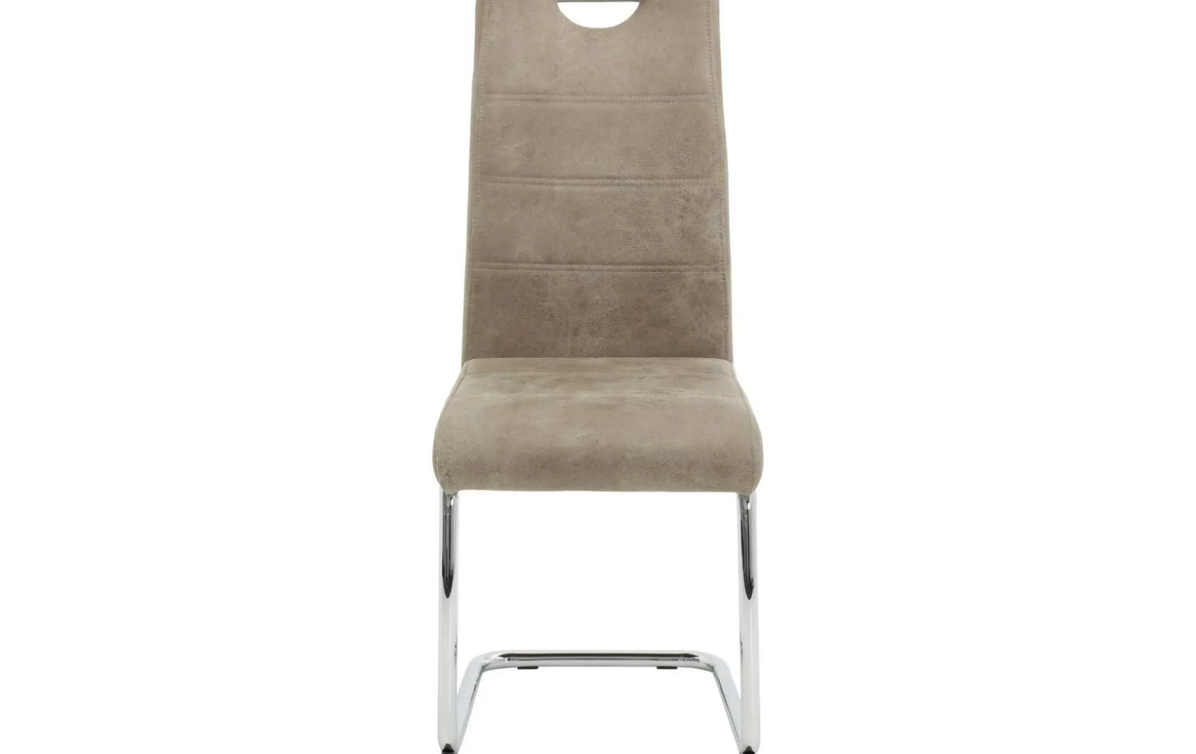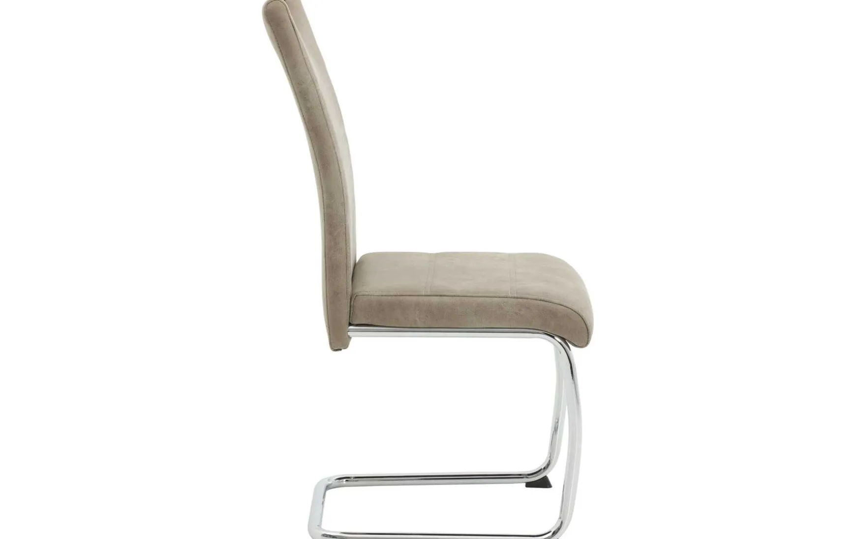 Dieser Moderne Schwingstuhl in einem Microfaser Vintage Bezug bezaubert mit einem elegantem Rücken. Das Gestell, welches verchromt ist, Sorgt für ein stimmiges Erscheinungsbild.