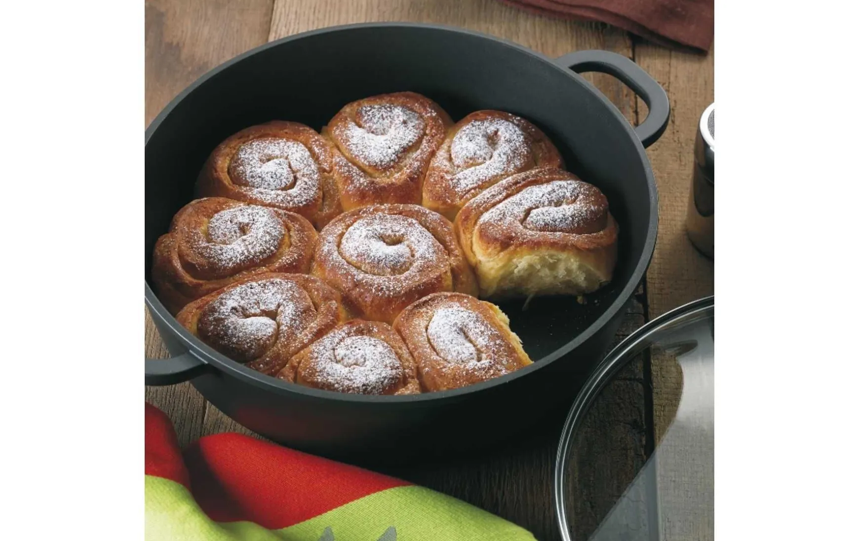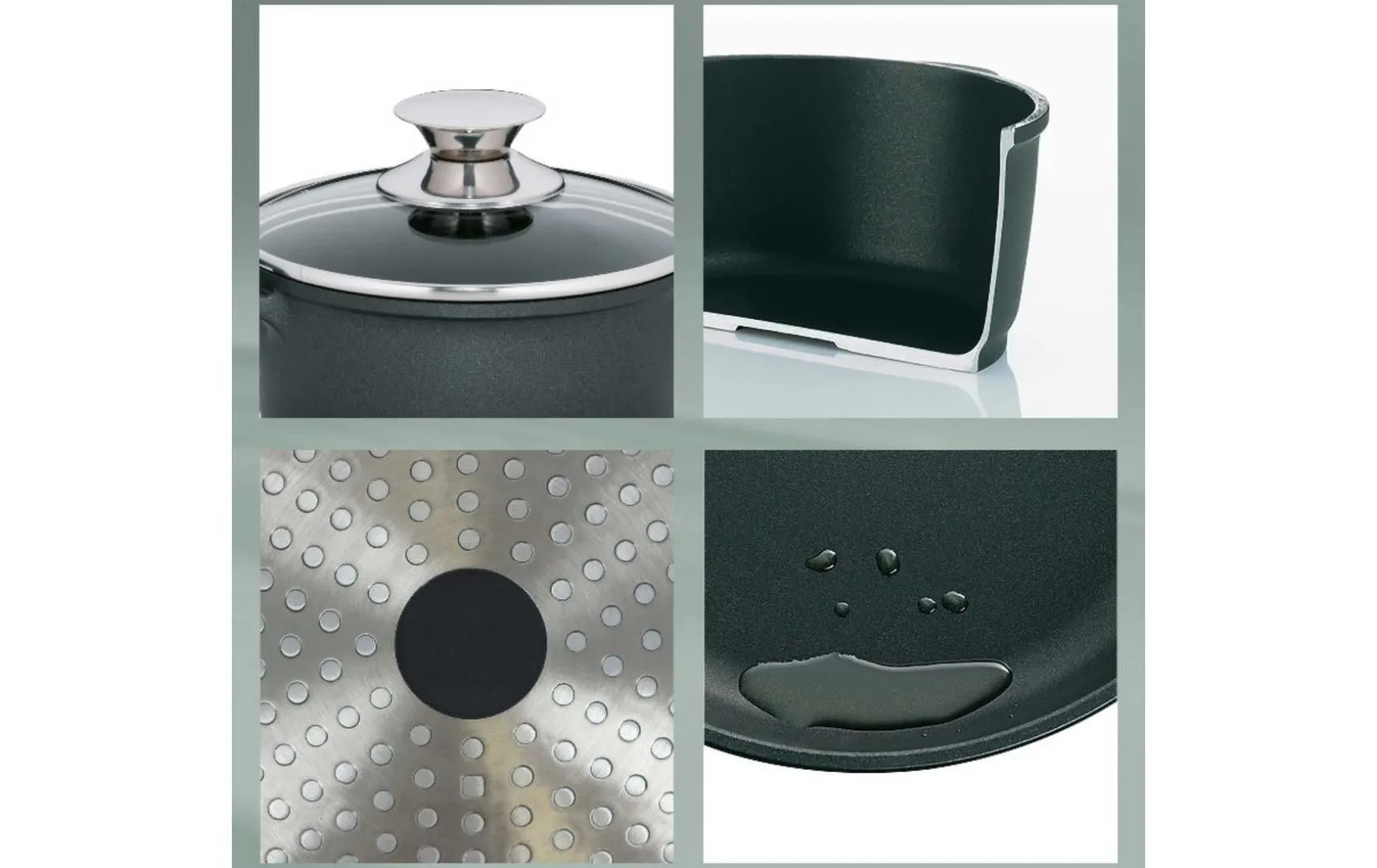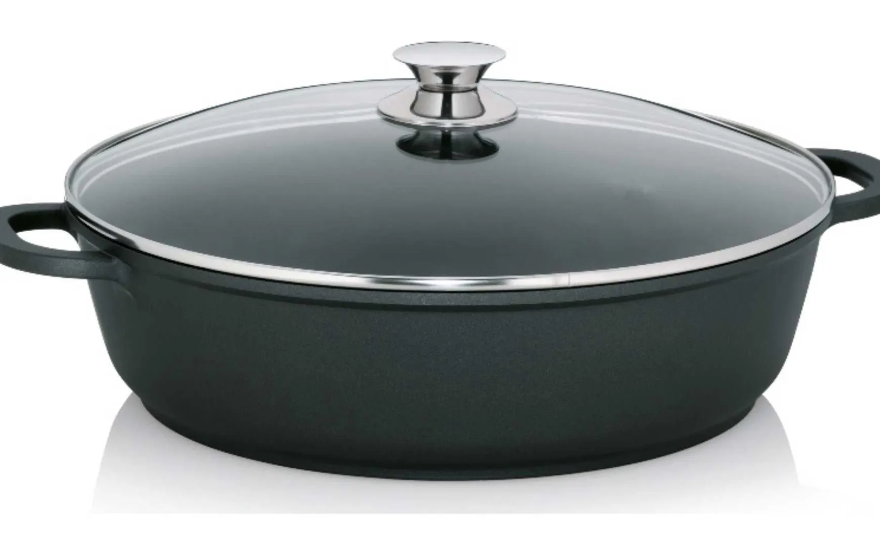 Die Servierpfanne ist aus einem robusten, 5 mm starkem Aluguss gefertigt, mit einer hochwertigen Antihaftbeschichtung veredelt und zusätzlich durch Keramikpartikel verstärkt. Qualität ist das Ergebnis intensiver Forschung und Entwicklung made in Germany, entwickelt für den Kontakt mit Lebensmitteln. Die Servierpfanne ist spülmaschinengeeignet. Wir empfehlen jedoch die Reinigung unter fließend heißem Wasser. Verwenden Sie zum Reinigen ein weiches Tuch, am besten kein Spülmittel. Danach mit einem Geschirrtuch abtrocknen. Diese Servierpfanne ist zudem für alle Herdarten geeignet und backofengeeignet bis 180° C, ohne Deckel sogar bis 220°C.