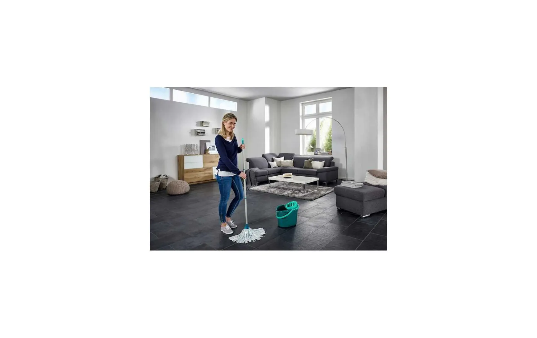 Das praktische „All-in-1“-Set enthält alles, was Sie zum Wischen Ihrer Böden benötigen: den Classic Viscose Mop mit dreiteiligem Stiel und einen 12l-Eimer mit Auswringvorrichtung. Dieser Auswringaufsatz hilft Ihnen, den Boden fast mühelos zu reinigen – ohne die Hände in schmutziges Wasser zu tauchen und ohne sich bücken und den Mopp von Hand auswringen zu müssen. Spülen Sie einfach die Moppfransen in einem Eimer mit Wasser aus, legen Sie den Moppkopf in den Auswringkorb und drehen Sie den Moppstiel mit leichtem Druck im Uhrzeigersinn. Die Viskosefransen sind im Handumdrehen ausgewrungen und trocken. Der 12-Liter-Eimer ist groß genug, um beim Reinigen immer ausreichend Wasser zur Verfügung zu haben. Die flexiblen Viskosefasern des Fransenwischers gleiten mühelos in Schlangenlinien über den Boden, um Tischbeine und andere Gegenstände herum und eignen sich perfekt zum Wischen von Treppen und Zimmerecken. Die 27 cm langen Fransen ermöglichen das Wischen großer Bodenflächen und sind besonders für die Reinigung von Fliesen und Steinoberflächen geeignet. Der Classic Viscose Mop hat einen 120 cm langen dreiteiligen Stahlstiel. Der abnehmbare Moppkopf ist bei 60 °C in der Maschine waschbar (ohne Weichspüler).