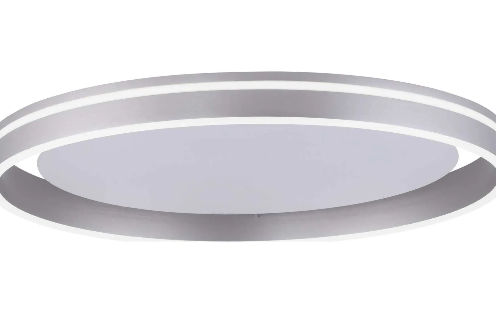 Diese silberfarbige LED-Deckenleuchte überzeugt mit ihrem modern runden und gradlinigen Design.
