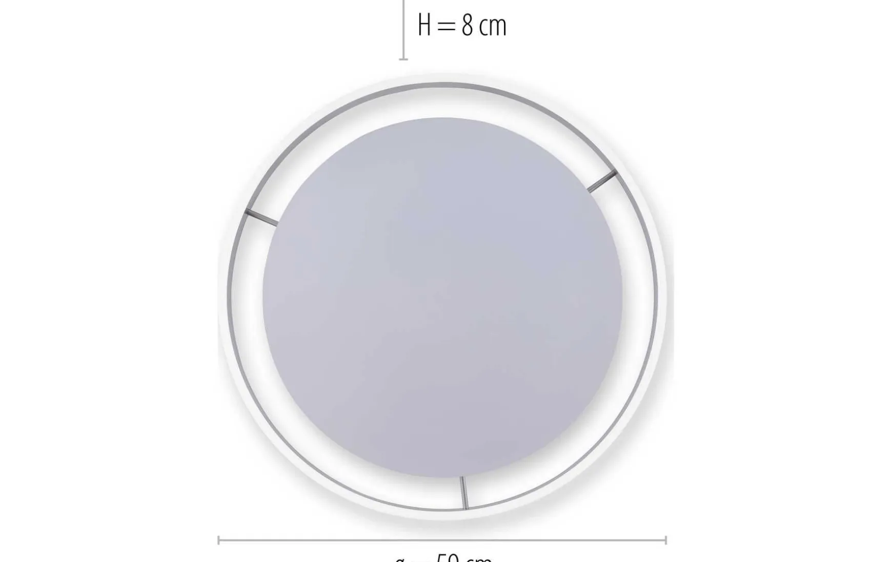 Die Leuchte hat einen Durchmesser von 59 cm und eine Abhängung von 8 cm.