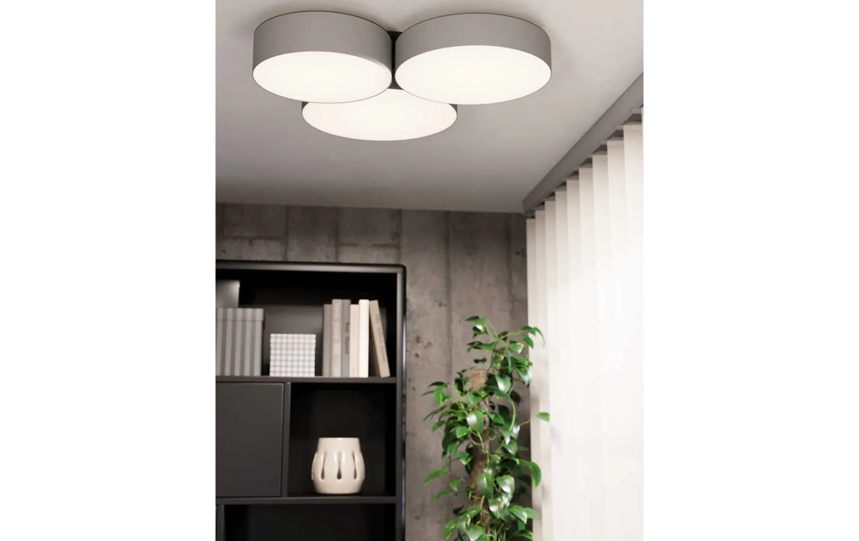 Diese Deckenleuchte ist mittels kostenloser App (AwoX Home Control) sowie einer separat erhältlichen Fernbedienung steuerbar und mit dem Zubehör der connect.z Serie kompatibel. Mit den festverbautem LED Modul haben Sie die Wahl zwischen warmweißem, neutralweißem oder kaltweißem Licht und einer Vielzahl an RGB Lichtfarben. Die Dimmfunktion bietet optimales Licht für jeden Anlass. Die Steuerung via App ermöglicht Ihnen zusätzlich den Zugriff auf weitere Komfortfunktionen wie Timer, Disco Modus, Anwesenheitssimulation und vielen mehr. Die Ansteuerung des LED Moduls erfolgt über Bluetooth sowie ZigBee 3.0 und ermöglicht zudem die Steuerung über kompatible Sprachassistenten. Grau mattes Textil verziert das aus Metall bestehende Gehäuse, welches mit einem weißen Kunststoffschirm ergänzt wird und die festverbauten LED Leuchtmittel vollumfänglich verdeckt. Durch die verschiedenen Durchmesser der Textilkreise wird die Deckenlampe zu einem echten Hingucker in jedem Raum, egal ob Schlafzimmer, Wohnzimmer oder Esszimmer.