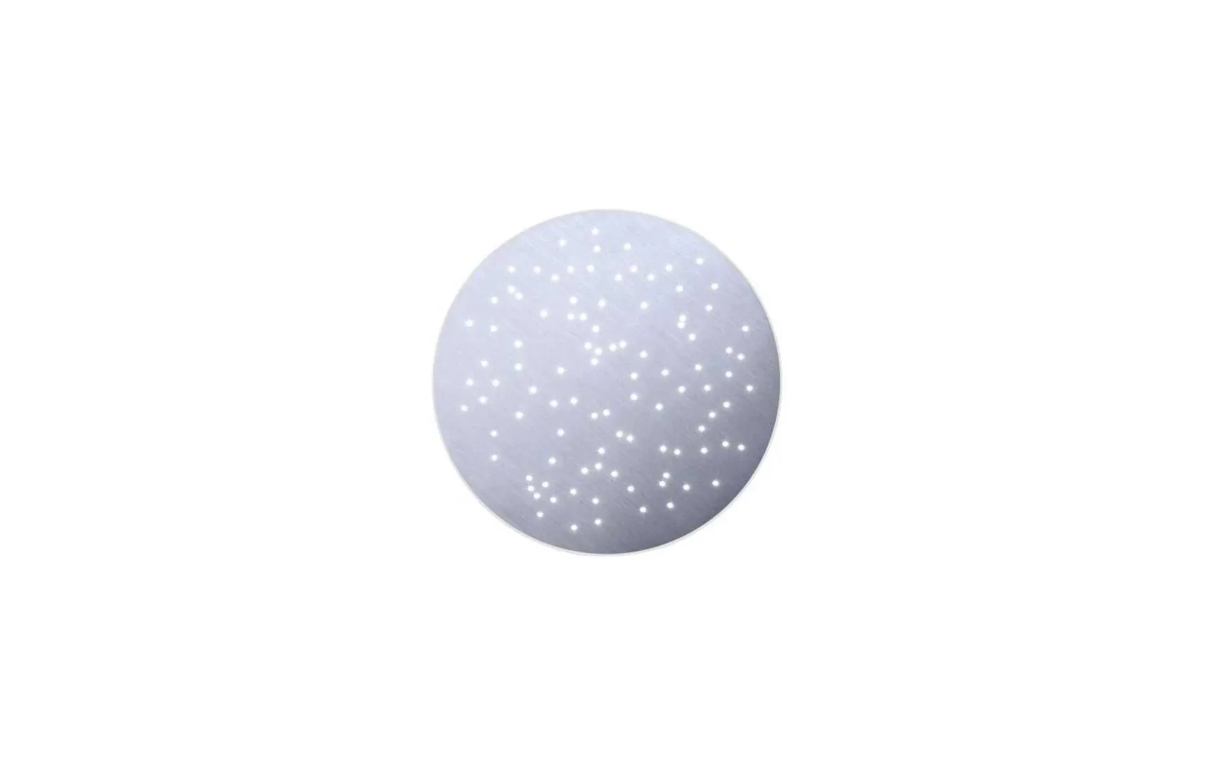 Diese runde Leuchte aus Aluminium die mit ihren Löchern ein Muster aus Lichtpunkten erzeugt und dazu mit einem seitlich umlaufenden leuchtenden Ring besetzt ist – dieses unkonventionelle Bild gibt die LED-Deckenleuchte ab.
