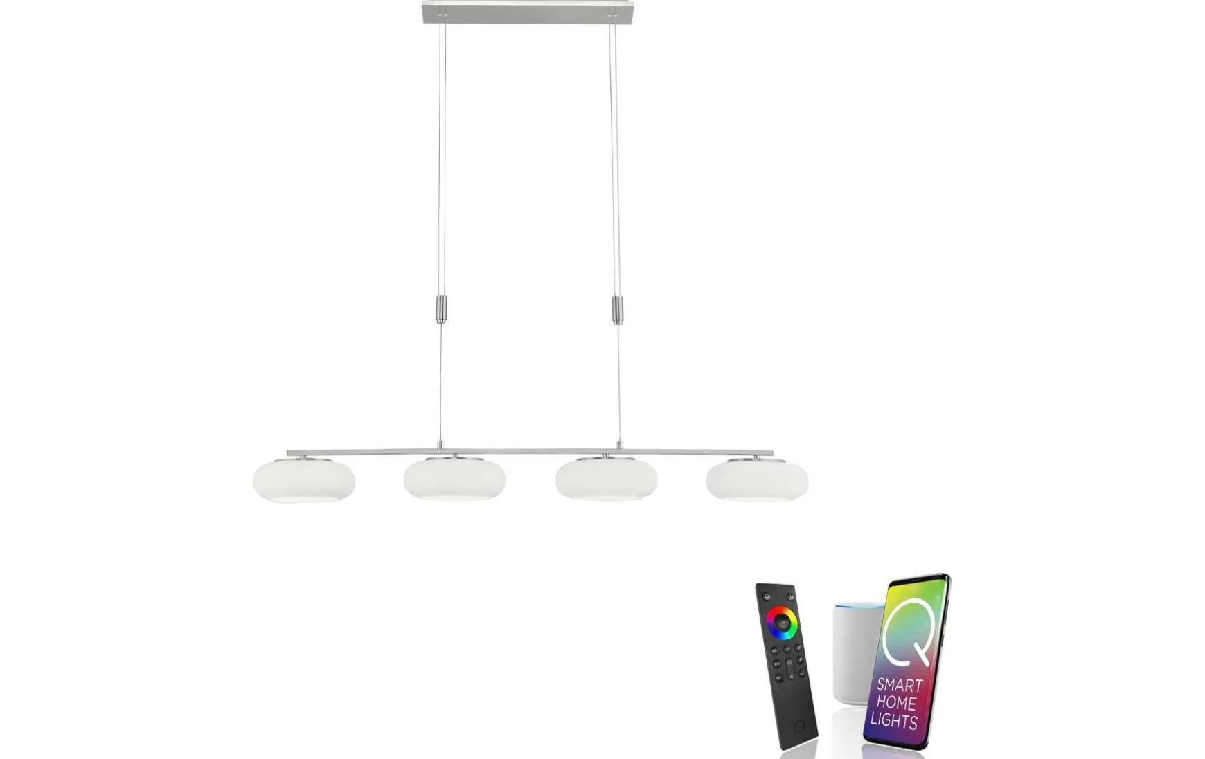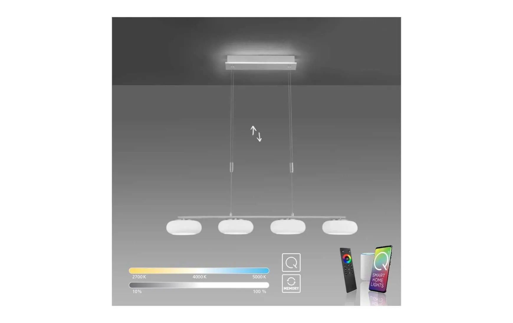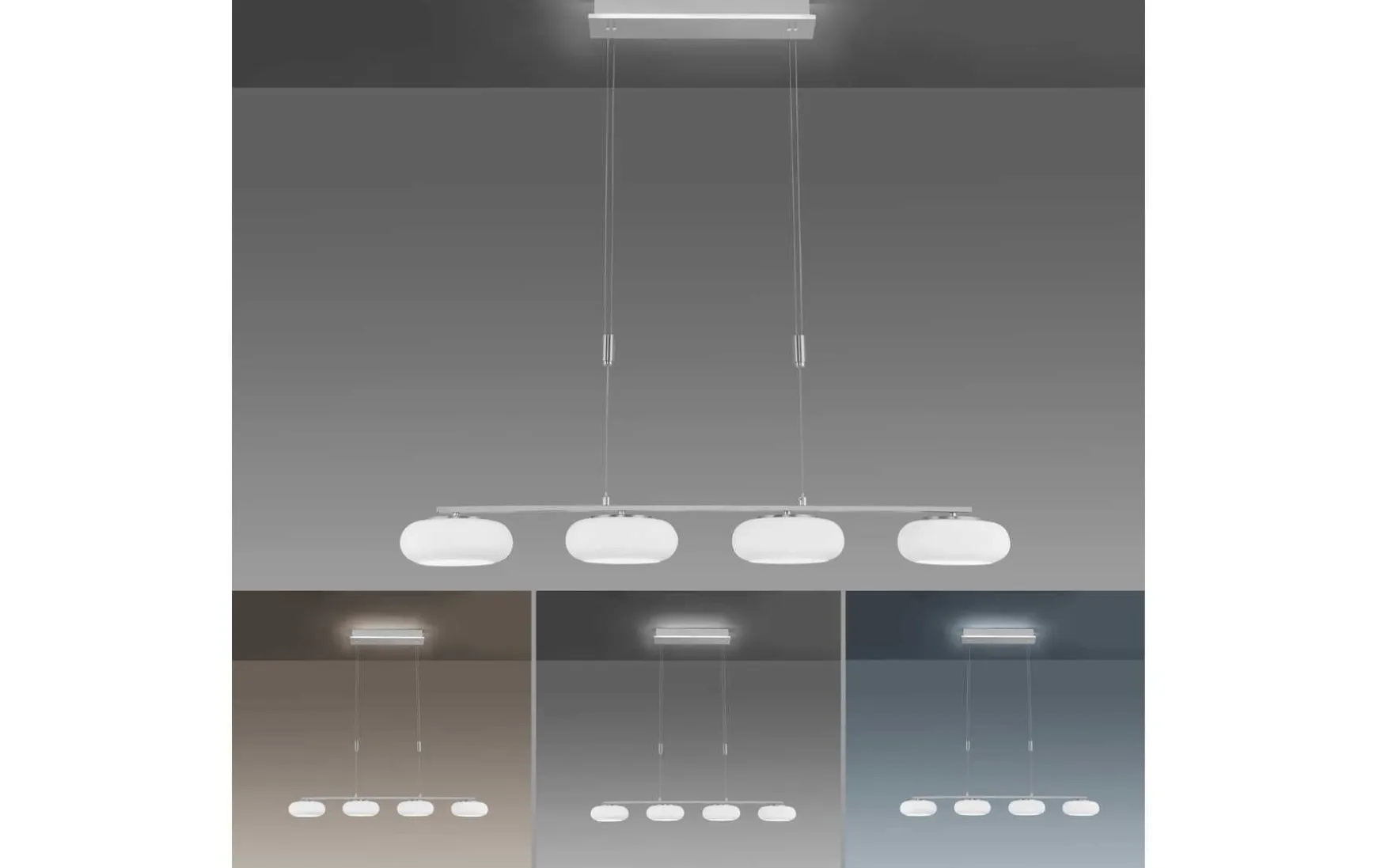 In der smarten vierflammigen LED-Pendelleuchte sind modernste Technik und eine zeitlose edle Form perfekt miteinander kombiniert.