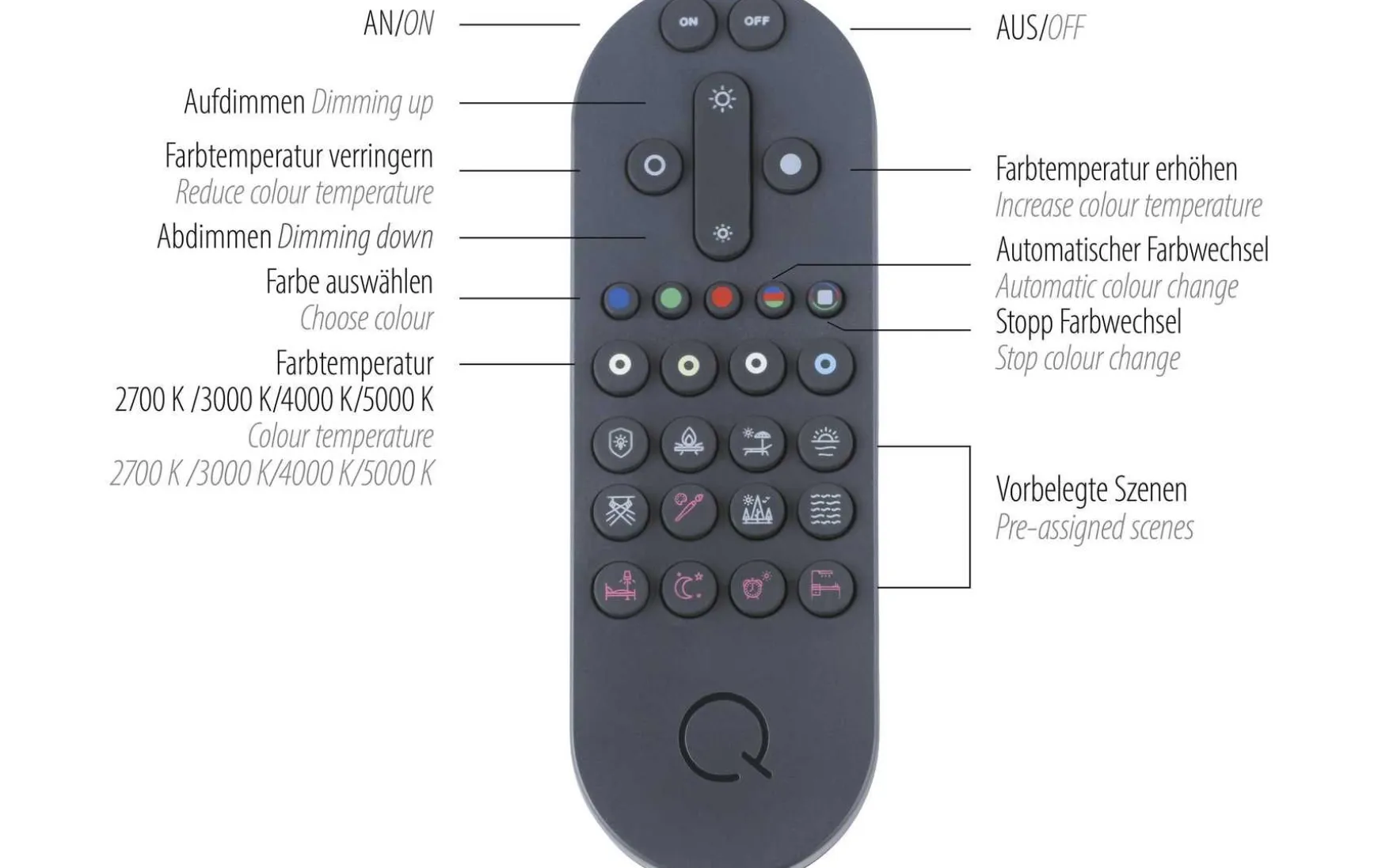 Per mitgelieferter Infrarot-Fernbedienung können Sie nicht nur die Lichtfarbe steuern sondern auch noch die Lichtintensität verändern.