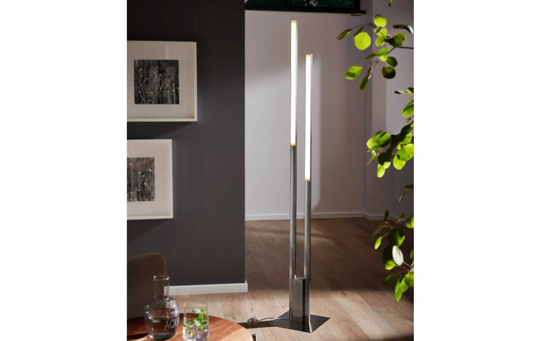 Diese Stehleuchte ist aus nickel mattem Stahl und Kunststoff mit speziellem gefertigt.