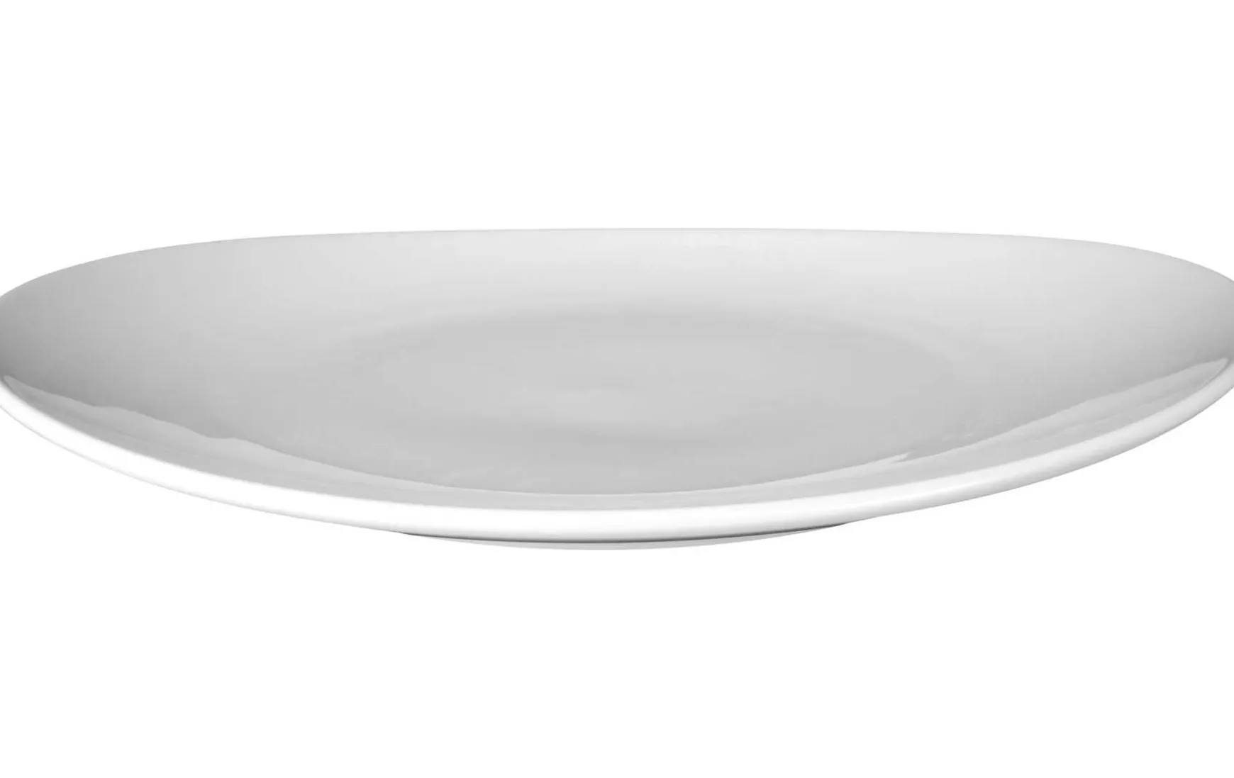 Ein Teller muss nicht rund sein! Dieser flache ovale Teller ist ein wahrer Hingucker und ist aufgrund seiner Größe bestens als Platzteller geeignet.