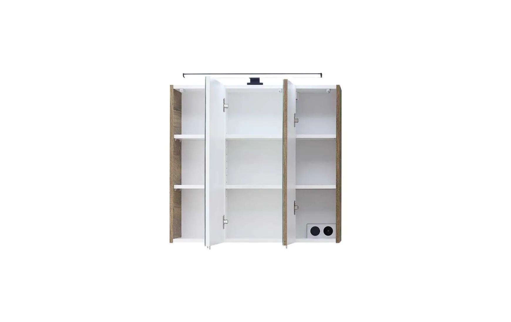Mit drei Spiegeltüren bietet der Schrank nicht nur eine großzügige Spiegelfläche, sondern auch verdeckten Stauraum für Kosmetik- und Badaccessoires. Die warme braune Holzoptik verleiht dem Bad eine natürliche, moderne Note. Gefertigt aus hochwertigem Holzwerkstoff und Spiegelglas, überzeugt der Spiegelschrank durch Stabilität und Pflegeleichtigkeit. Dank der vormontierten Lieferung ist er schnell und unkompliziert einsatzbereit.