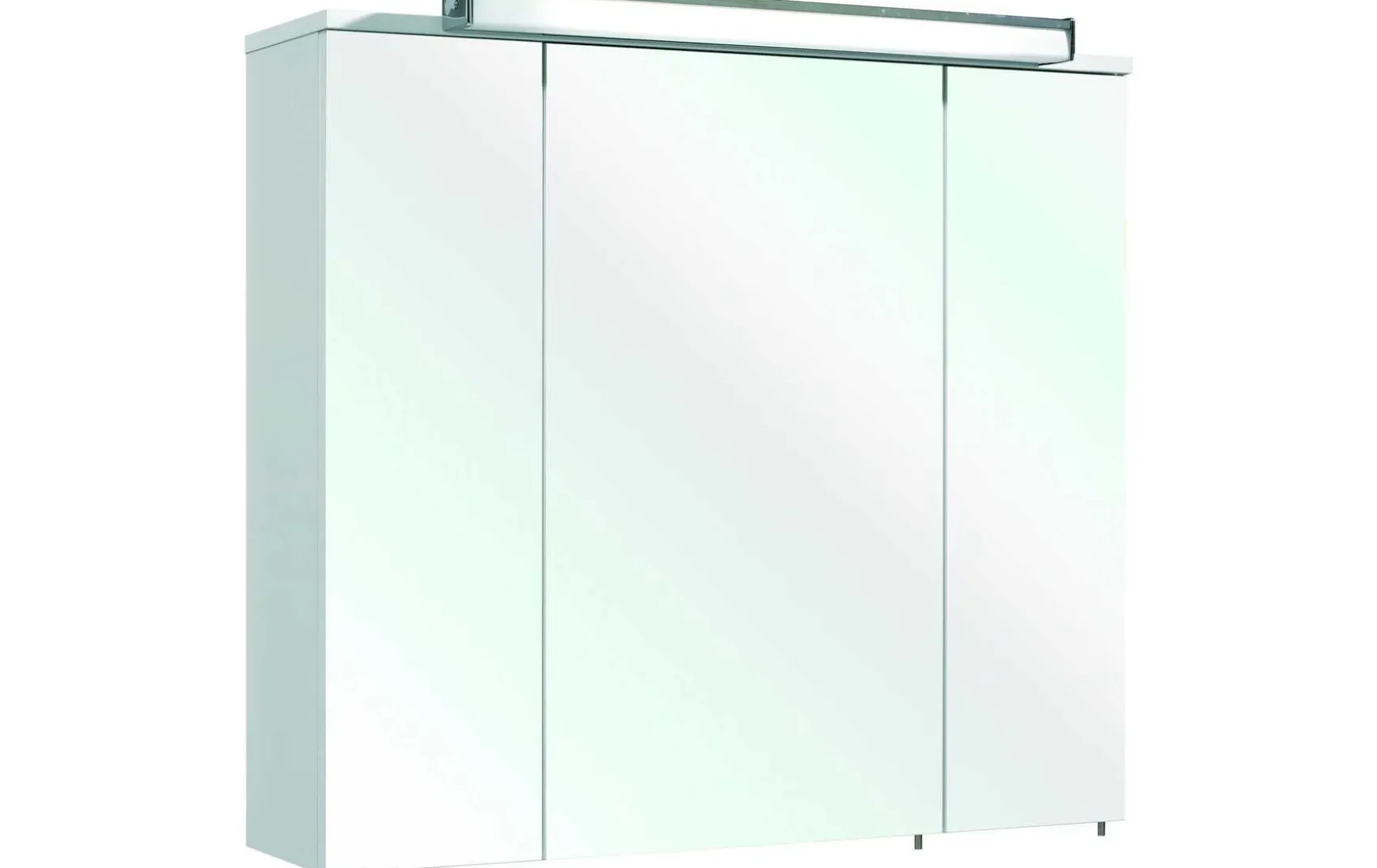 Der moderne Spiegelschrank im klassischen Weiß-Glanz Dekor vereint zeitloses Design mit hoher Funktionalität und ist die ideale Ergänzung für jedes Badezimmer. Mit drei Spiegeltüren und sechs Einlegeböden bietet er großzügigen Stauraum für Kosmetik- und Pflegeprodukte. Die integrierte LED-Bügelleuchte sorgt für eine gleichmäßige, angenehme Ausleuchtung, während Schalter und Steckdose zusätzlichen Komfort im Alltag bieten.