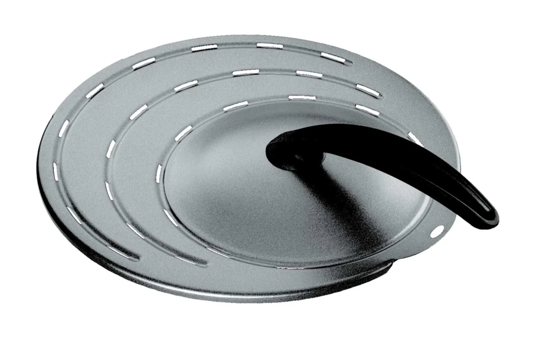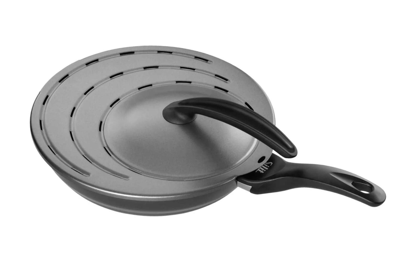 Der Spritzschutzdeckel eignet sich für alle Bratpfannen mit einem Durchmesser von bis zu 28 cm.