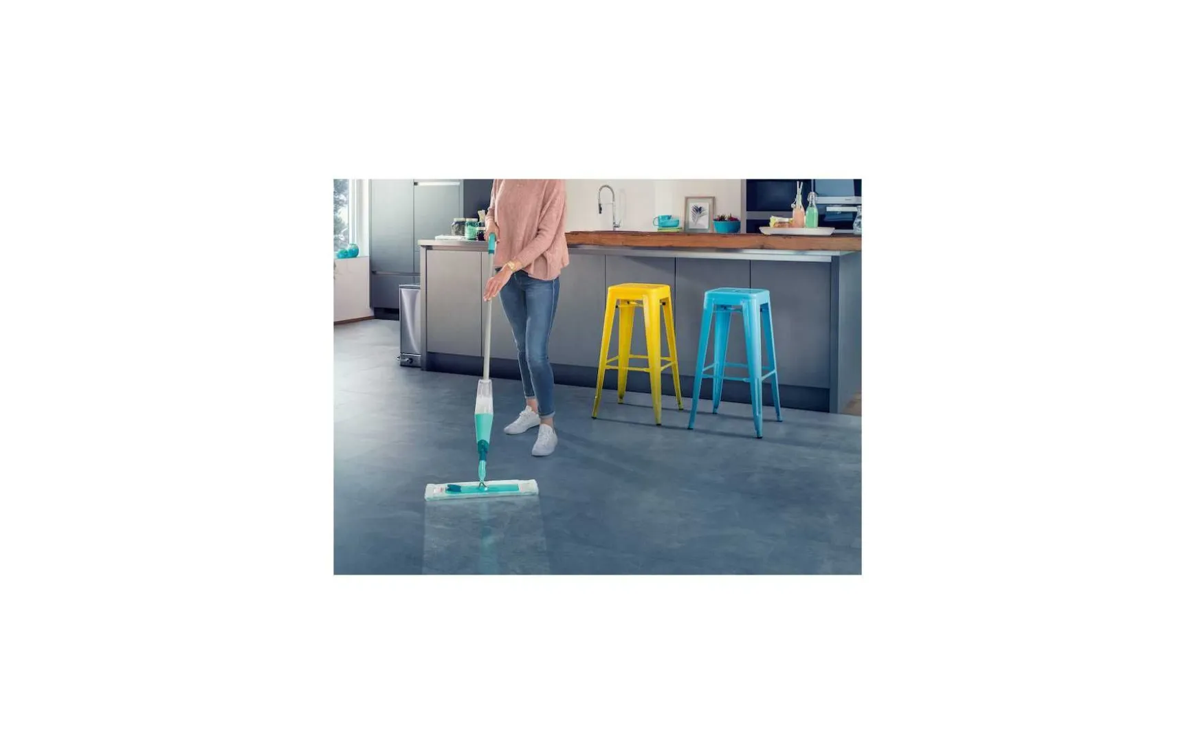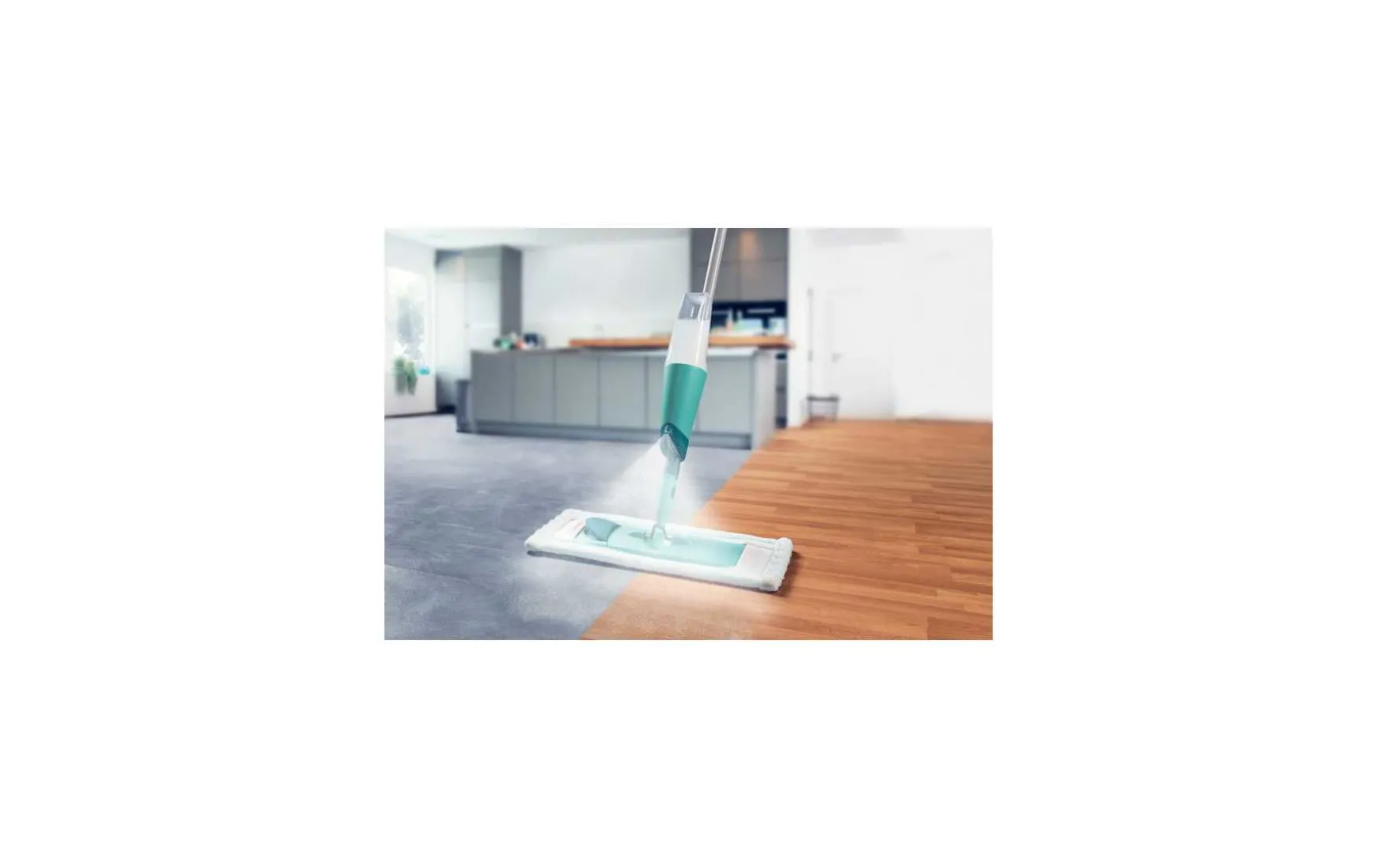 Dieser Wischer ist ideal, wenn zwischendurch kleinerer Schmutz entfernt werden muss (verschüttete Flüssigkeiten, Essensreste, Schuh- und Pfotenabdrücke). Der Wischer ist am Stiel mit einem Sprühtank ausgestattet, somit ist ein bequemes Wischen ganz ohne Eimer möglich. Die Sprühdüse verteilt das Mittel fein und genau vor dem Wischer auf den Boden, sodass der Wischbezug den Schmutz mühelos aufnehmen kann. Der Wischbezug besteht aus speziellen Borsten, die auch hartnäckigen Schmutz lösen können. Die feinen Mikrofasern saugen Verschmutzungen und Wasser anschließend effektiv auf. Der Leifheit Sprühwischers ist mit einem 360°-Gelenk ausgestattet, das macht die Reinigung um Möbel herum einfacher, gewischt wird mit einem 42 cm breiten MicroDuo-Wischbezug, der bei 60° waschbar ist.