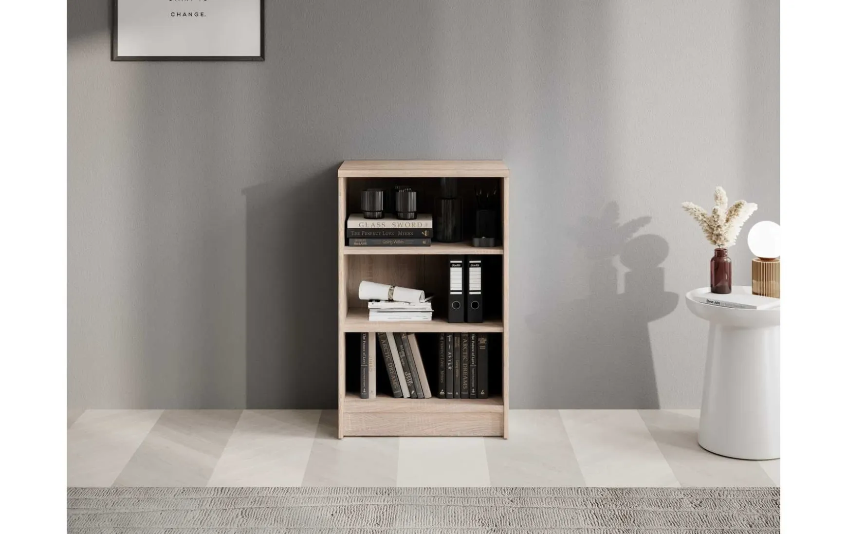 Das Regal gefällt dank seiner komfortablen Höhe auf angenehm kompakter Grundfläche. Auf 2 Einlegeböden findet sich reichlich Platz um all die Dinge sauber und ordentlich verräumen zu können, die eben so in das Regal gehören sollen. Da es aus Spanplatte gefertigt ist, ist das Regal angenehm leicht, was seiner Stabilität aber selbstverständlich keinen Abbruch tut. Dank der qualitativ hochwertigen Verarbeitung ist es besonders langlebig und trotzt erfolgreich den alltäglichen Abnutzungen, wodurch es auch nach langer Zeit noch eine gute Figur macht.