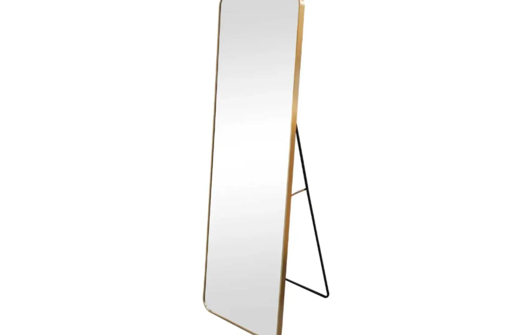 Dieser Standspiegel hat zwei große Vorteile: Er sieht dank des goldfarbenen Aluminiumrahmens richtig gut aus und du kannst ihn frei im Raum aufstellen. Die Maße des hochwertigen Wohnaccessoires belaufen sich auf ca. 50 x 150 x 2,2 cm (BxHxT).