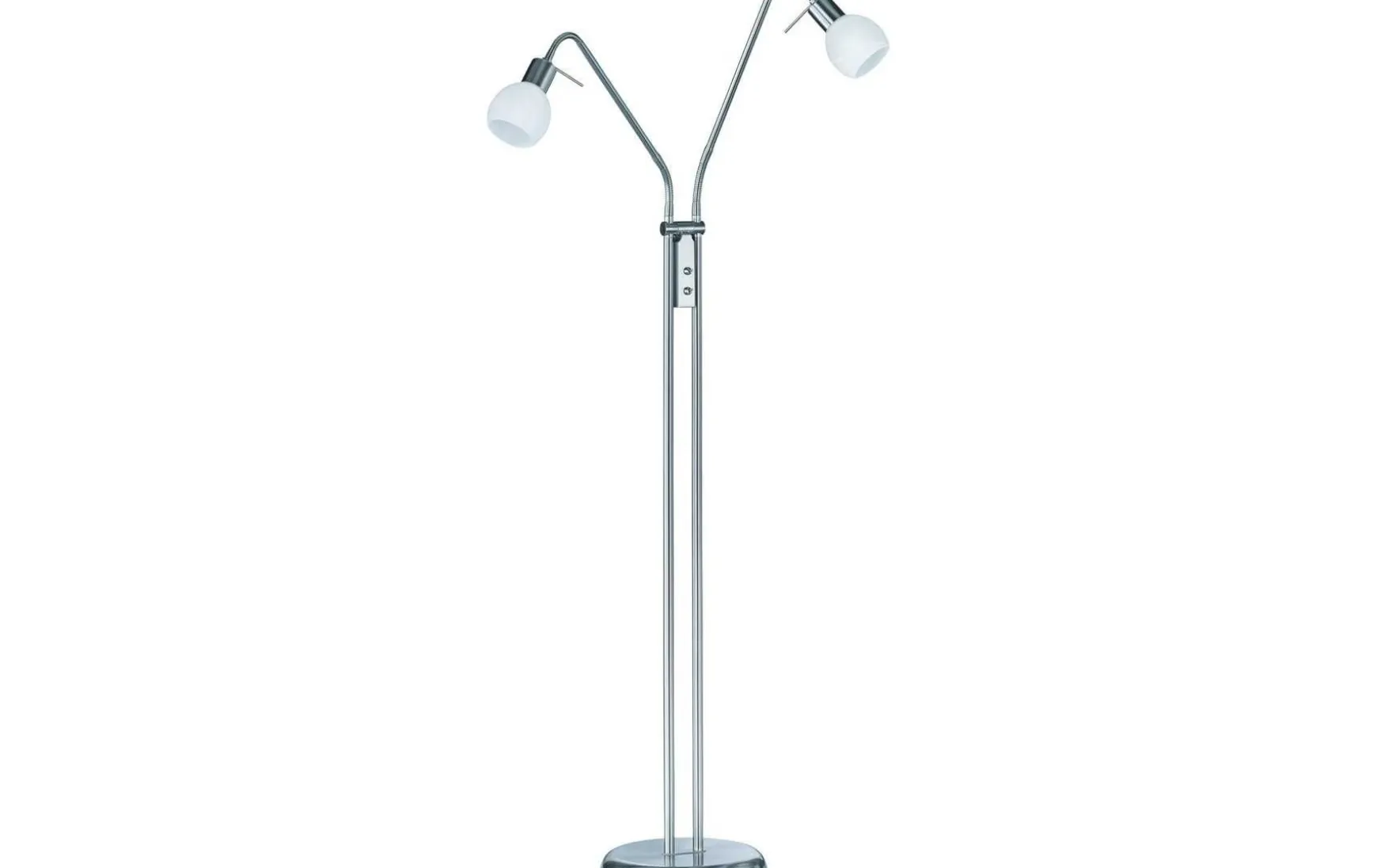 Der Korpus in Nickel matt wirkt in Kombination mit den Glasschirmen in Alabaster weiß elegant und modern.