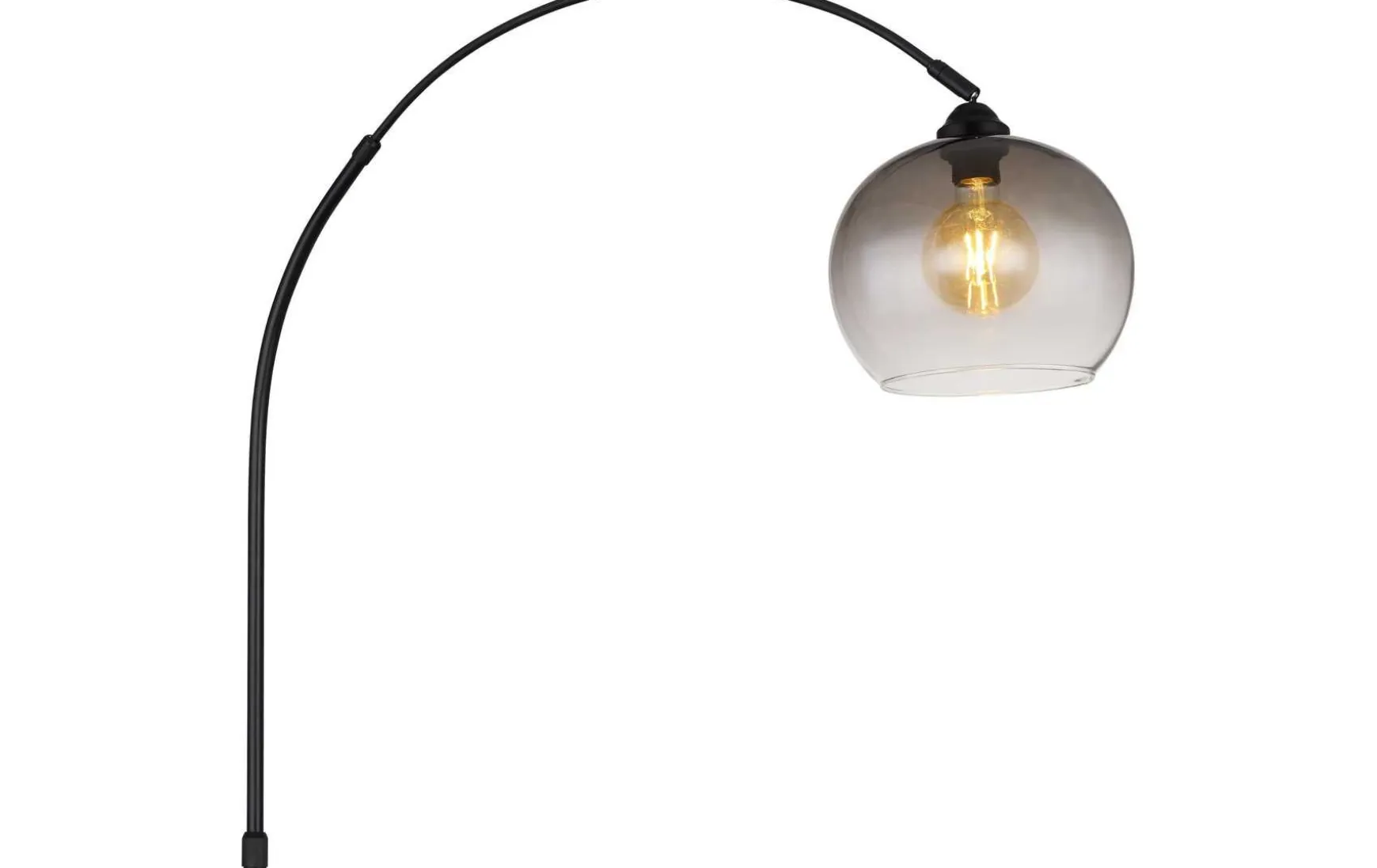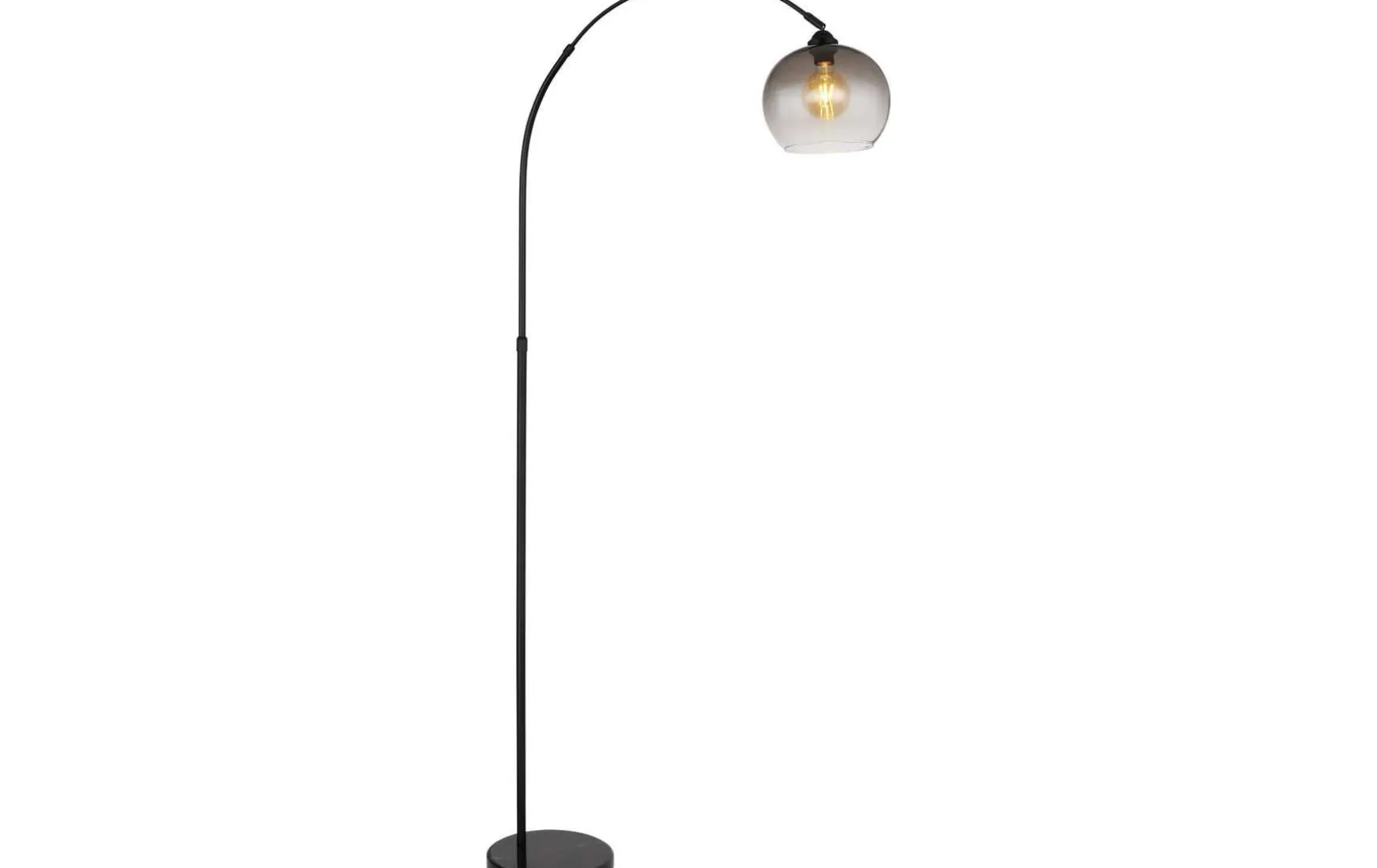 Stehleuchte Metall schwarz matt, Marmor schwarz, Glas rauchfarben, Kabel PVC Schwarz, Fußtrittschalter im Kabel, Höhenverstellbar, LxBxH: 960x300x1960mm, Kabellänge 1800mm, Höhe einstellbar, von 141 bis 196 cm, exkl. 1x E27 60W 230V