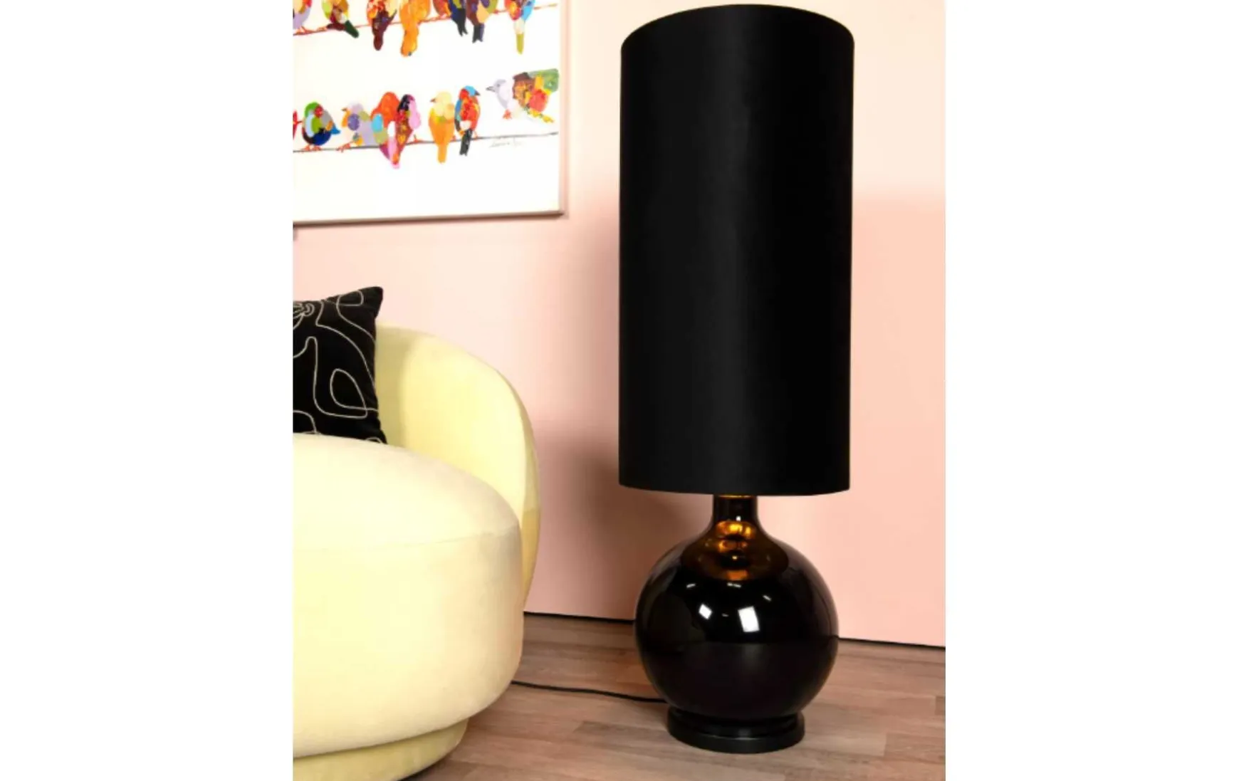 Liebhaber von auffälligen Akzenten im Interieur werden dem Charme dieser Stehleuchte sicher verfallen. Diese runde Stehlampe mit kugelförmigem Sockel zaubert Ihnen sofort ein Lächeln ins Gesicht. Der Lampenschirm aus Stoff gibt ihr einen Retro-Look, der Sie in die 60er Jahre zurückversetzt. Ziehen Sie also Ihre besten Kleider an und schwingen Sie das Tanzbein. Mit dieser Stehleuchte in Ihrem Wohnzimmer werden Sie jeden Tag Spaß haben. Oder genießen Sie ihre Gegenwart neben Ihrem Bett. Mit ihrer beeindruckenden Höhe ist die Stehleuchte definitiv ein Hingucker.