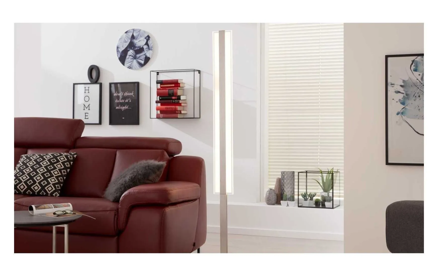 Im Lieferumfang der ca. 20 x 150 x 20 cm (BxHxT) großen Leuchte für den Wohnbereich sind zwei Leuchtmittel mit einer Leistung von jeweils 15 Watt enthalten.