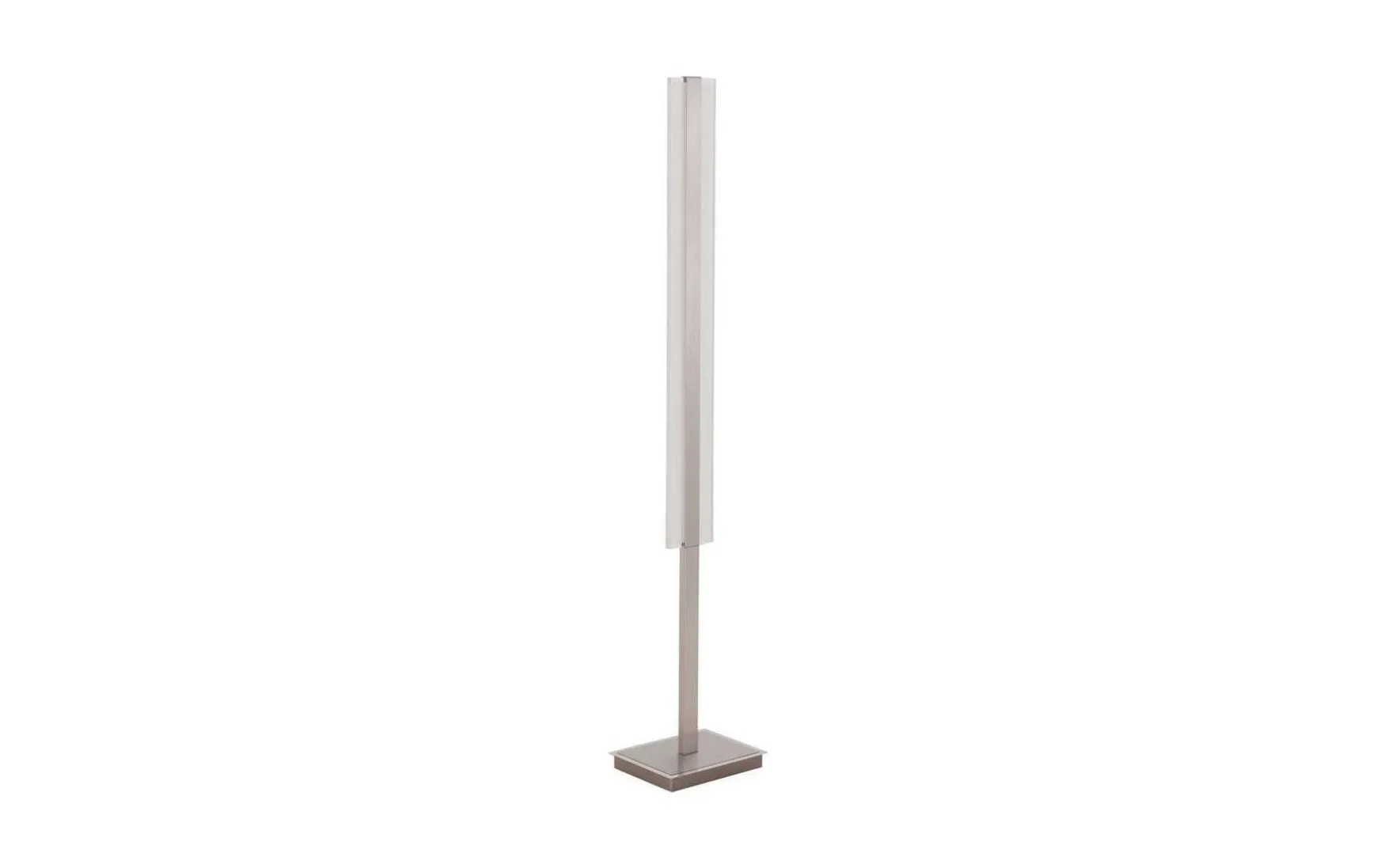 Diese Stehleuchte kombiniert satiniertes Acrylglas und Nickel matt zu einem modernen Ganzen mit futuristischen Anklängen.