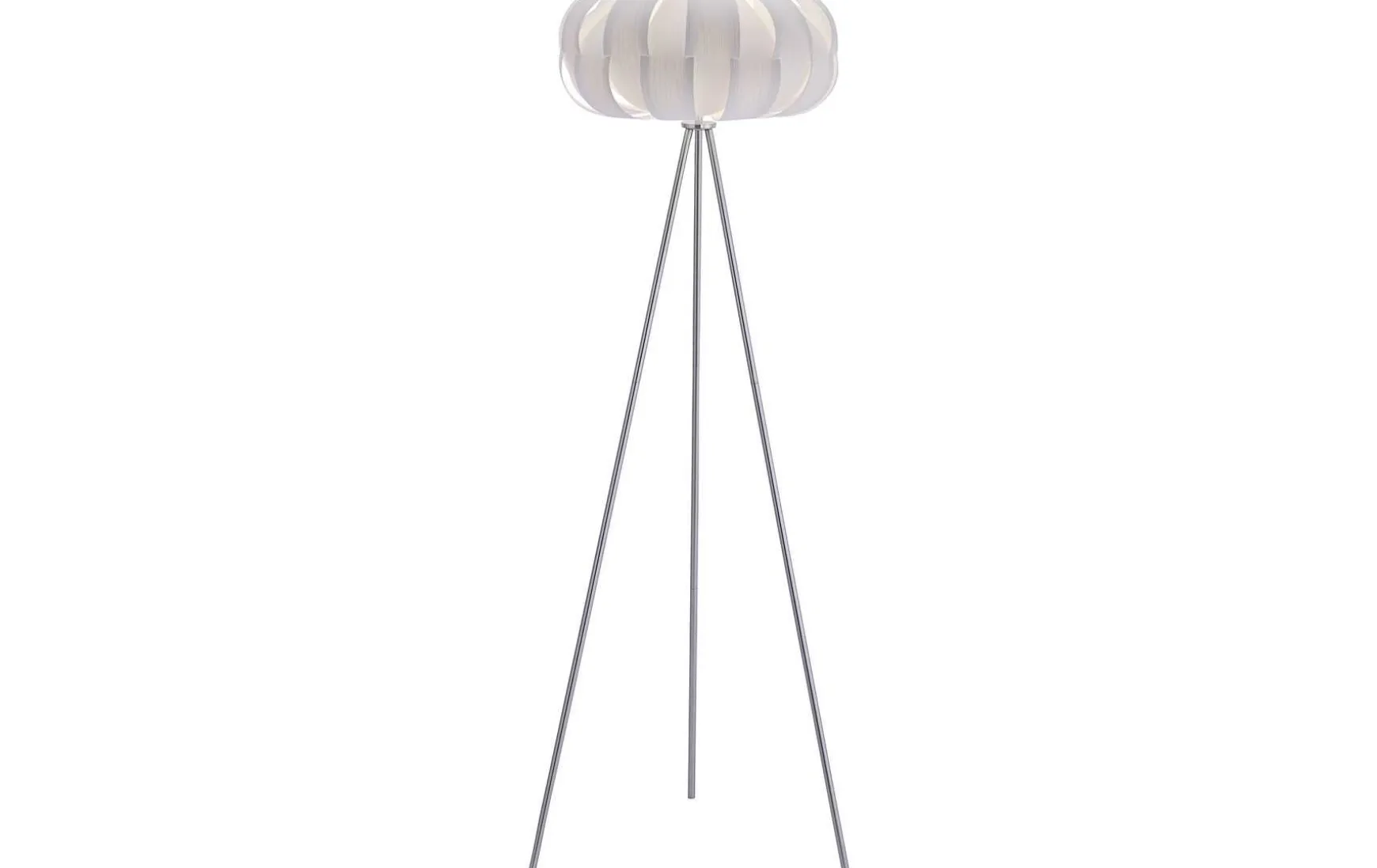 moderne Stehleuchte 3-Bein, Kunststoff-Schirm weiss, Durchmesser Schirm 48cm, Hoehe 148cm, excl. 1x E27 LM 60 Watt