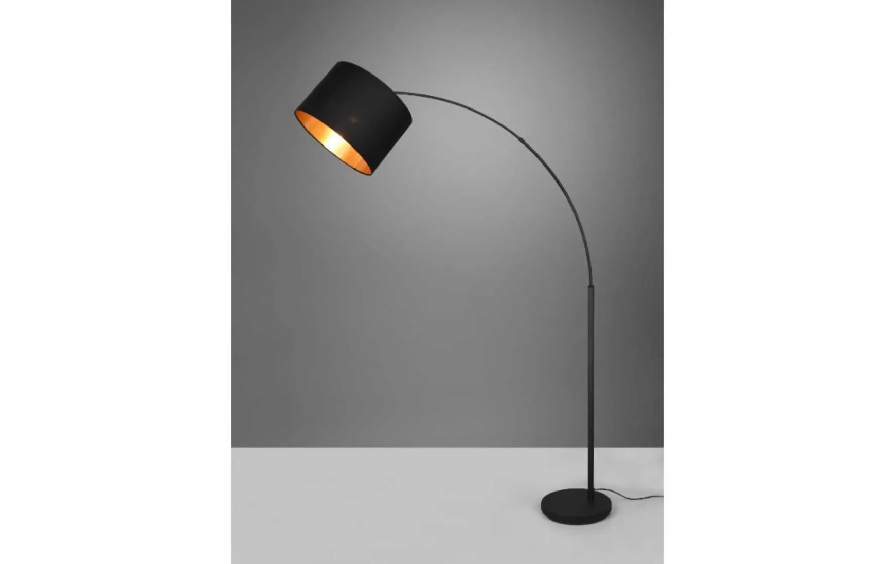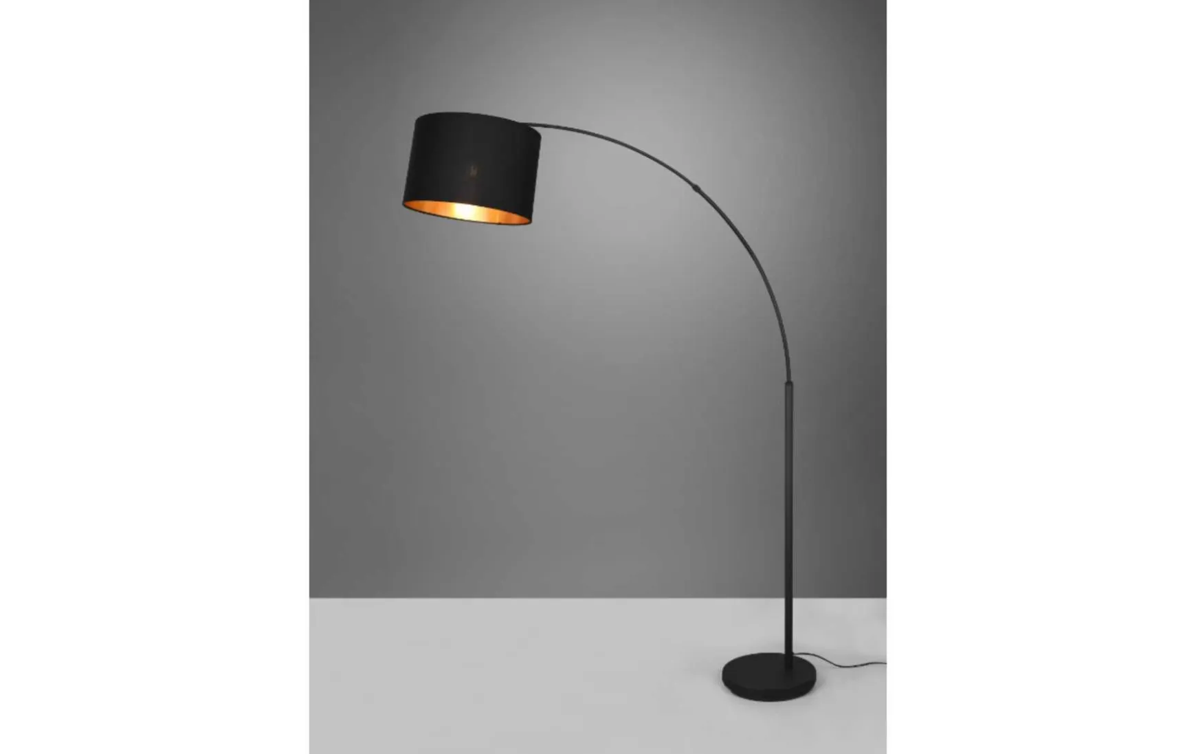 Die Bogenleuchte schafft durch die Kombination von Form und Material eine Atmosphäre von Gemütlichkeit und Wohlbefinden in Ihrem Wohnbereich. Die moderne und elegante Leuchte wird mit ihrem Textilschirm zum Highlight neben Ihrem Sofa und sorgt zeitgleich für eine perfekte und stimmungsvolle Beleuchtung. Über einen Fußschalter lässt sich die Stehleuchte bequem ein- und ausschalten. ‚Die Farbkombination nach dem Motto “Black meets Gold“ wirkt elegant und edel und wird zu einem besonderen Blickfang mit toller Lichtwirkung.‘ Für eine energiesparende Beleuchtung empfiehlt sich die Verwendung eines LED Leuchtmittels. Diese sind eine optimale Alternative zu herkömmlichen Halogen Leuchtmitteln und stehen für eine hohe Lichtqualität und eine Energieeinsparung von bis zu 80%. Zusätzlich profitieren Sie bei LED Leuchtmitteln von einer langen Lebensdauer, einer geringen Wärmeentwicklung und schonen gleichzeitig die Umwelt.