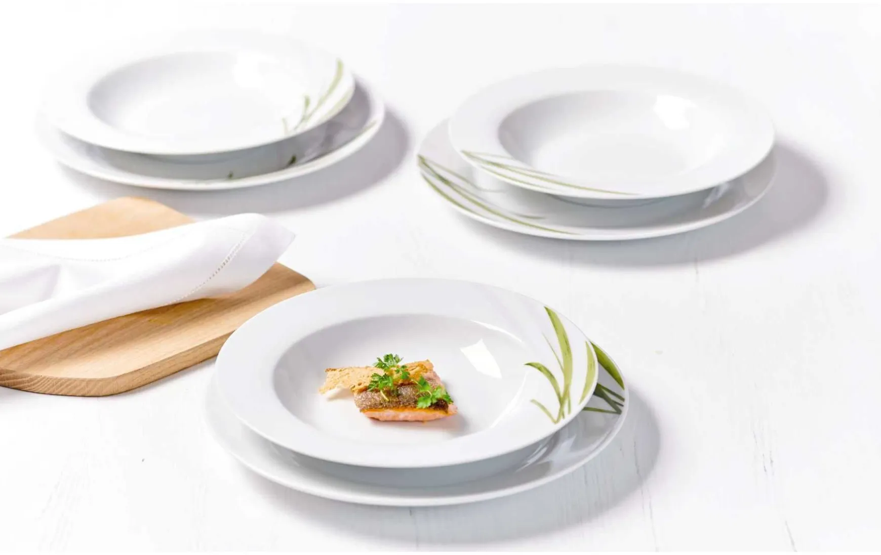 Dieses Geschirr-Set ist von der Natur inspiriert. Die moderne und geradlinige Form des Porzellans ergänzt das minimalistische Blumendekor. Das Grasmotiv unterstreicht die Liebe zum Detail, die dieses Produkt sehr realistisch macht.