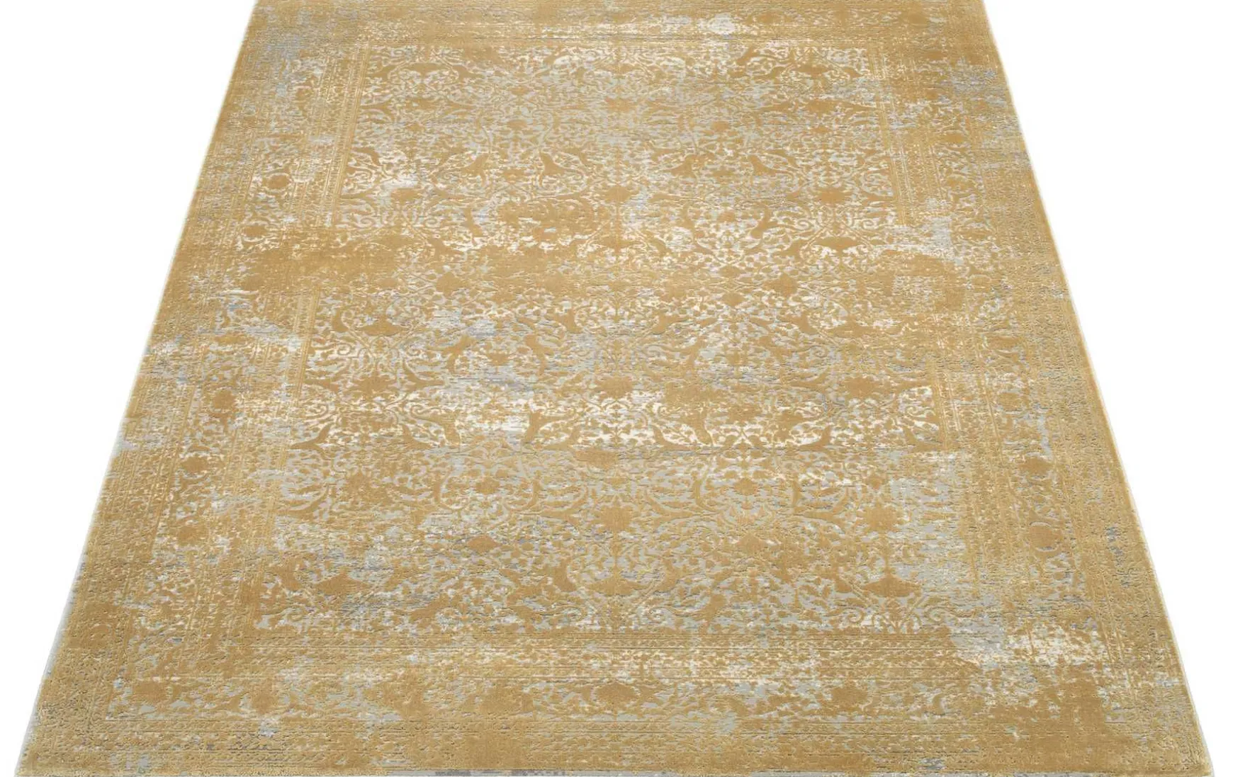 Erleben Sie den Glanz und die Pracht unserer goldenen Teppichschöpfung – ein Meisterwerk der Eleganz und Opulenz, die jeden Raum in ein königliches Ambiente verwandeln! Wie strahlendes Sonnenlicht auf einem goldenen Pfad entfaltet sich dieser Teppich in einer Aura von Luxus und Exklusivität, die jeden Blick und jeden Schritt verzaubert. Unser Teppich ist nicht nur ein Bodenbelag, er ist ein Symbol für Stil, Pracht und individuellen Geschmack!