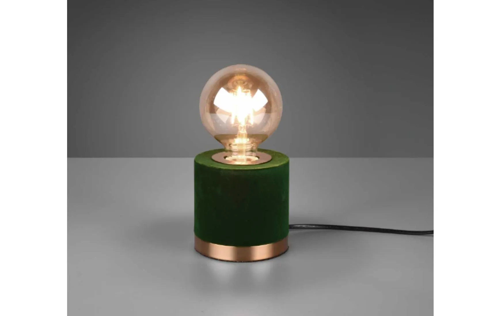 Lampen im Retro-Stil liegen nicht nur voll im Trend, sie sind bei richtiger Platzierung auch ein echter Hingucker. Das schlichte Design dieser Leuchte wird durch die spannende Kombination aus Samt und Metall zu einem echten Hingucker. Weniger ist hier mehr – um den dekorativen Charakter zu erhalten, empfehlen wir ein Filament-Leuchtmittel, das nicht nur optisch zum Design der Leuchte passt, sondern auch für ein angenehmes Ambiente sorgt. Die Tischleuchte ist mit einem Schnurschalter ausgestattet, der das Ein- und Ausschalten erleichtert. Dank der modernen Farbgebung in Grün und Messing lässt sich die Leuchte als stilvolles Element in jeden Wohnbereich integrieren. Für eine energiesparende Beleuchtung empfiehlt sich der Einsatz eines LED-Leuchtmittels. Diese stellen eine optimale Alternative zu herkömmlichen Halogenlampen dar und stehen für eine hohe Lichtqualität und Energieeinsparungen von bis zu 80 %. Darüber hinaus profitieren Sie mit LED-Lampen von einer langen Lebensdauer, geringer Wärmeentwicklung und schonen gleichzeitig die Umwelt.