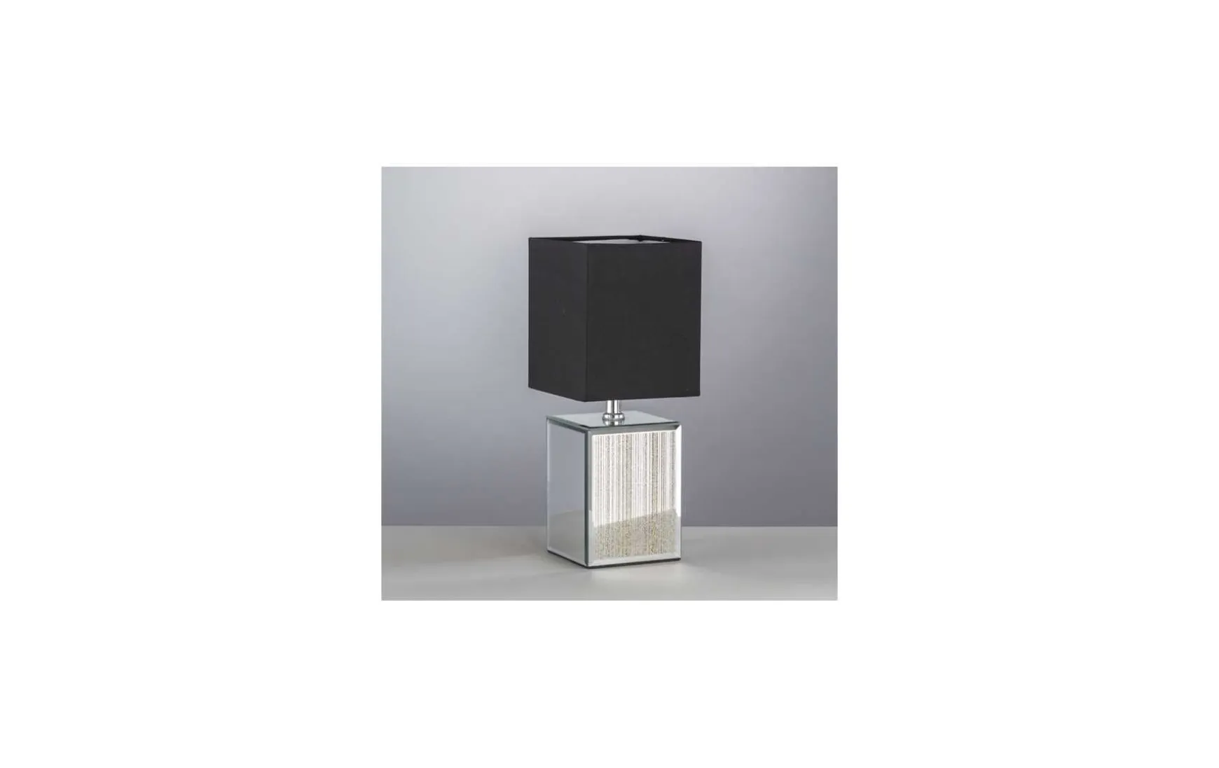 Tischleuchte | | silberfarben verspiegelt Stoffschirm – anthrazit – L: 14,00 cm | B: 14,00 cm | H: 35,00 cm mit Schnurschalter.