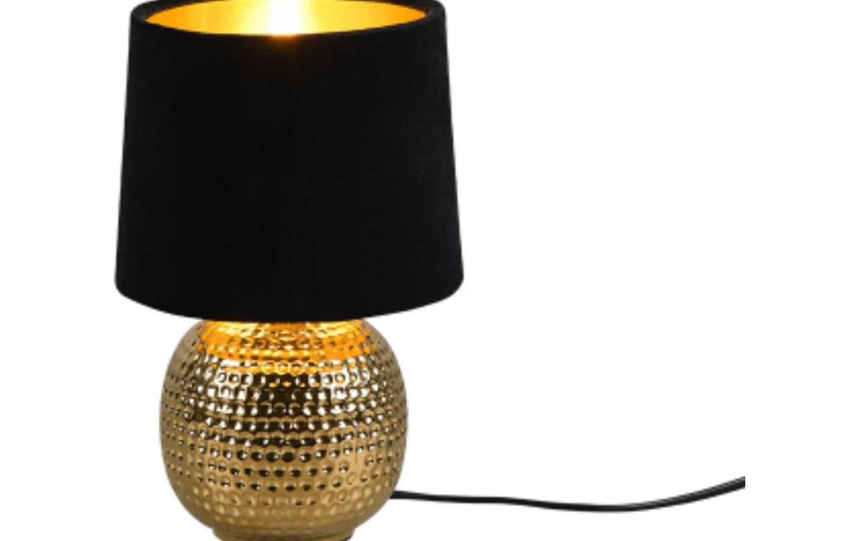Garantiert ein Blickfang! Diese Tischleuchte erscheint im modernen und auffälligen Design und zieht damit alle Blicke auf sich. Ob als Nachttischleuchte im Schlafzimmer, auf der Kommode oder auf dem Beistelltisch im Wohnzimmer, die Tischleuchte setzt dekorative Akzente. Gleichzeitig wird über den Lampenschirm ein warmes und sanftes Licht abgegeben, das für eine angenehme Lichtstimmung sorgt. Die Leuchte ist mit einem Schnurschalter ausgestattet, wodurch sie leicht ein- und ausschaltbar ist. Die Kombination, aus Keramik in Gold und dem Samtschirm in Schwarz-Gold, sorgt für ein modernes Erscheinungsbild. Für eine energiesparende Beleuchtung empfiehlt sich die Verwendung eines LED Leuchtmittels. Diese sind eine optimale Alternative zu herkömmlichen Halogen Leuchtmitteln und stehen für eine hohe Lichtqualität und eine Energieeinsparung von bis zu 80%. Zusätzlich profitieren Sie bei LED Leuchtmitteln von einer langen Lebensdauer, einer geringen Wärmeentwicklung und schonen gleichzeitig die Umwelt.