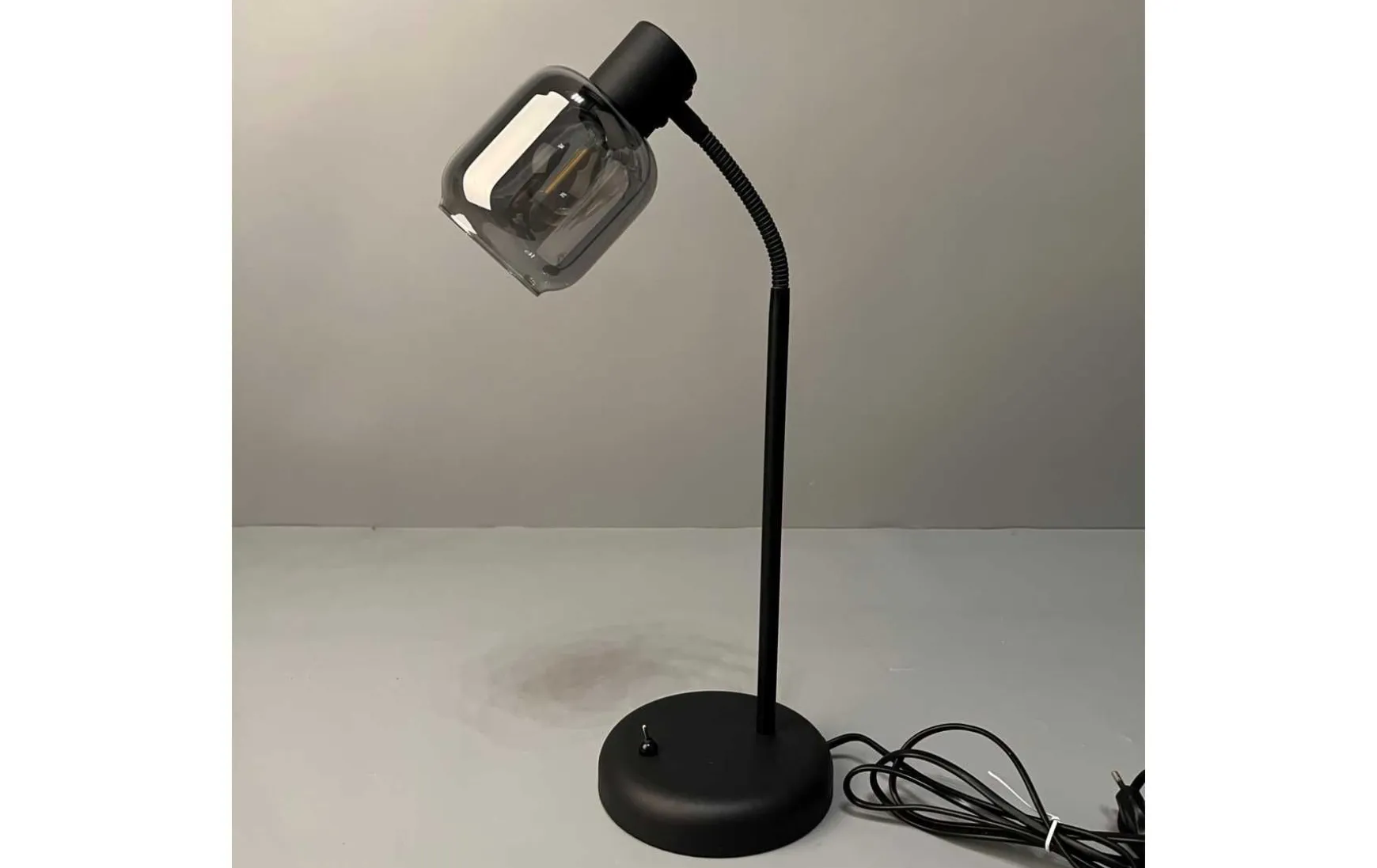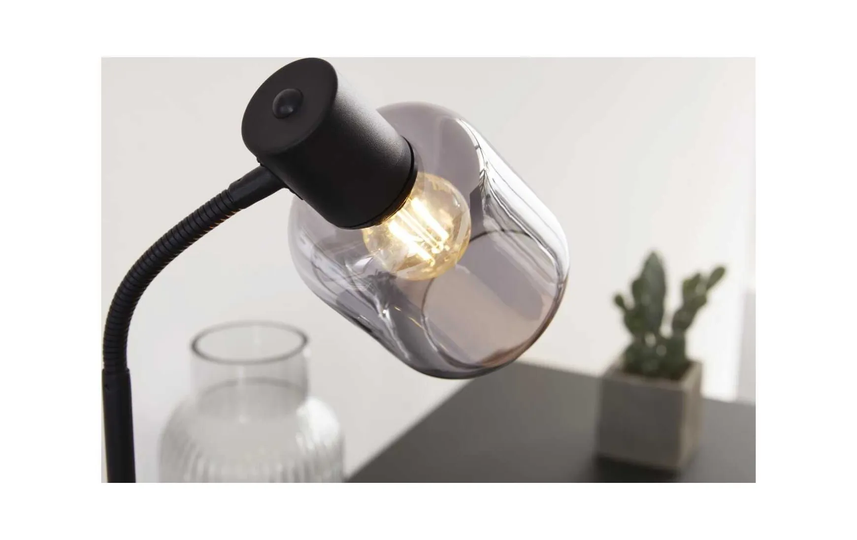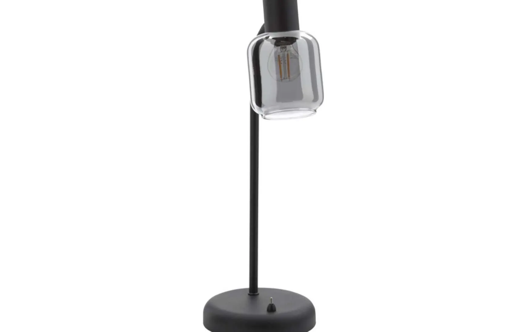 Diese Tischleuchte kombiniert mattschwarzes Metall mit einem Lampenschirm aus verspiegeltem rauchfarbenen Glas. Durch die Materialien und Farben sowie die spezielle Formensprache verkörpert die Tischlampe eine moderne Interpretation des angesagten Industriestils. Sie verleiht dem Raum das gewisse Etwas und sorgt natürlich auch für die gewünschte Helligkeit.