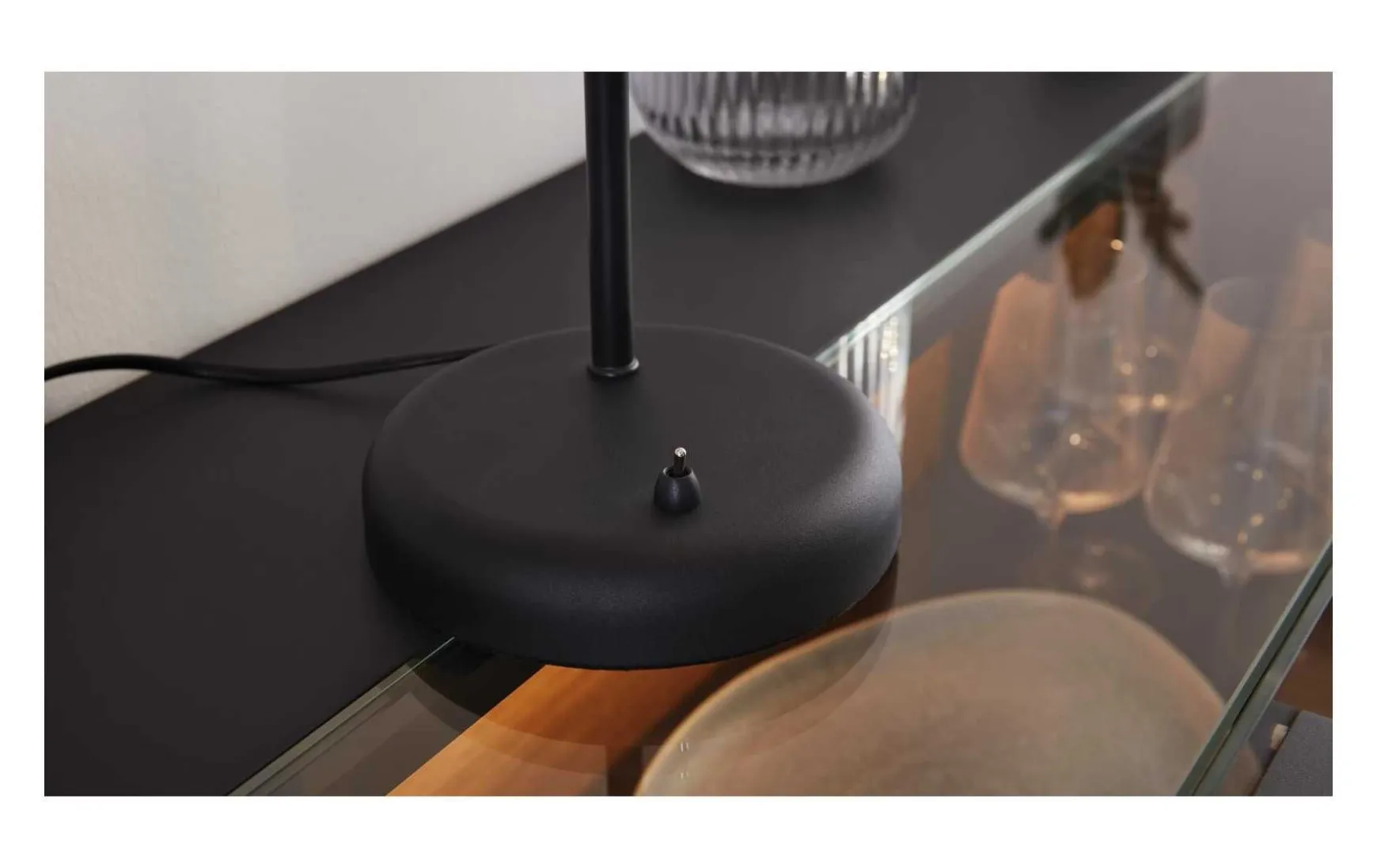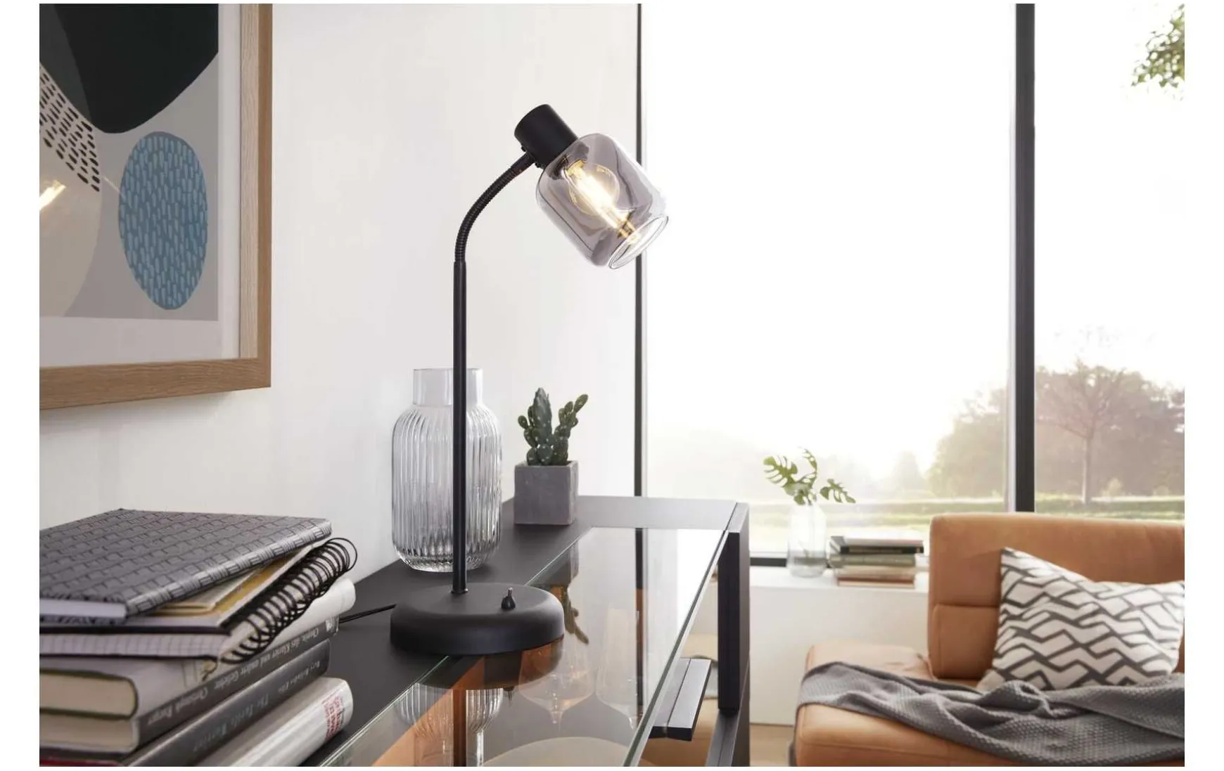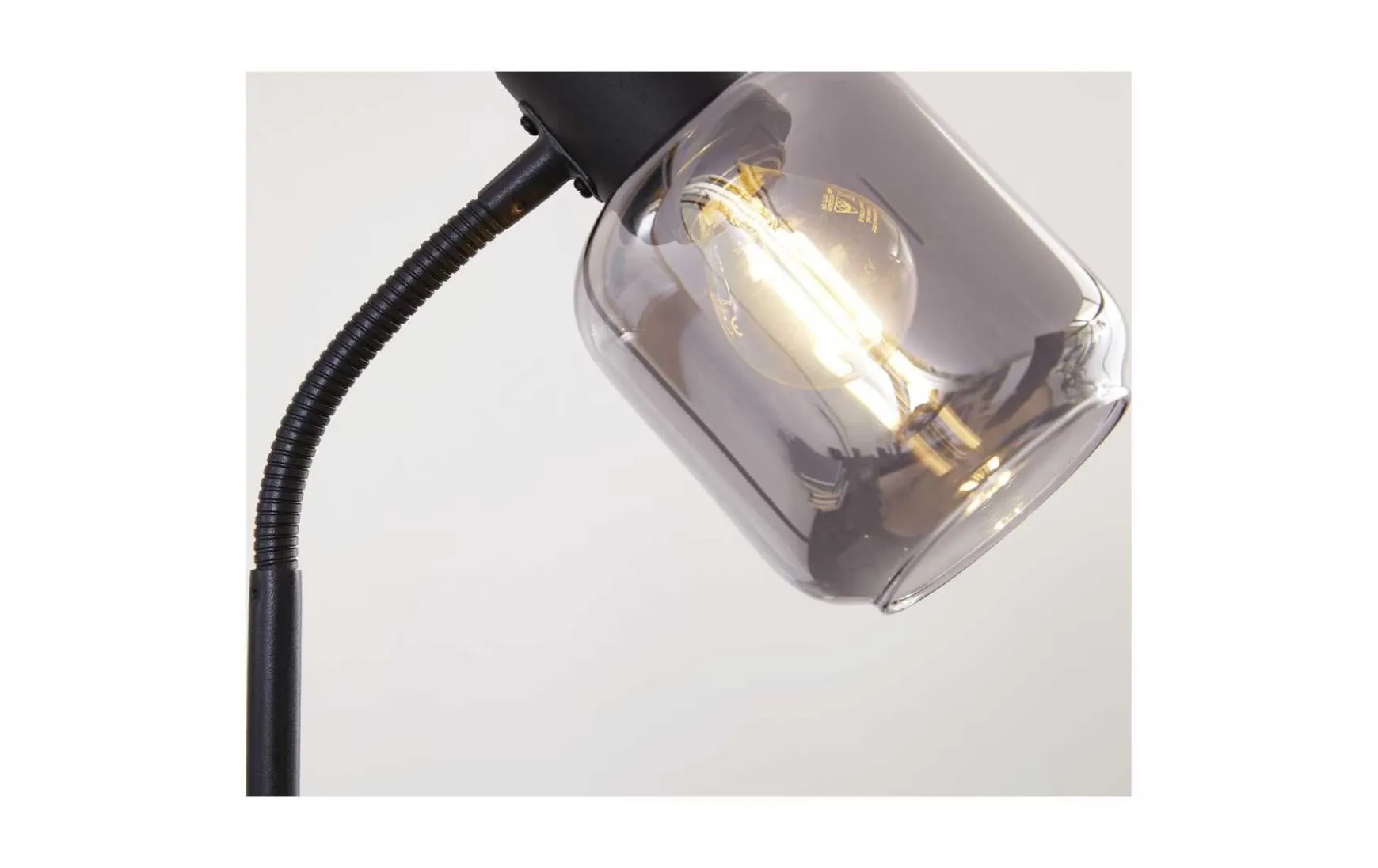 Diese Tischleuchte kombiniert mattschwarzes Metall mit einem Lampenschirm aus verspiegeltem rauchfarbenen Glas. Durch die Materialien und Farben sowie die spezielle Formensprache verkörpert die Tischlampe eine moderne Interpretation des angesagten Industriestils. Sie verleiht dem Raum das gewisse Etwas und sorgt natürlich auch für die gewünschte Helligkeit.