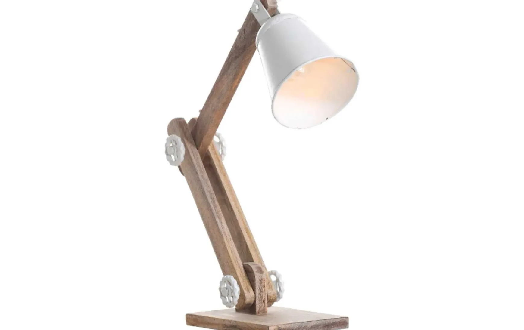 Die moderne Tischleuchte aus massivem, natur gebeiztem und geöltem Mangoholz in Kombination mit einem weißen, aus Metall gefertigten Lampenschirm sorgt für einen tollen Blickfang und harmonisch Lichtstimmung in Ihrem Räumen. Höhenverstellbar von 40 bis 55 cm wird die Tischleuchte zerlegt geliefert und ist für Leuchtmittel bis maximal 40 Watt geeignet.