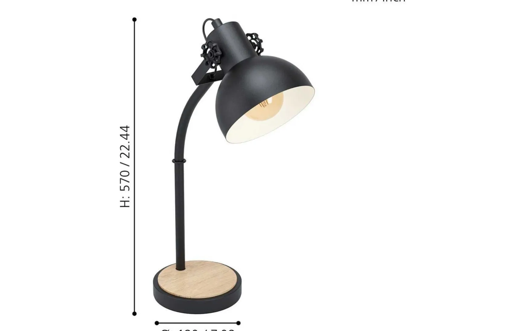 Die Tischleuchte ist aus schwarzem Metall und einem schwenkbaren Leuchtenkopf mit einer cremefarbenen Innenseite gefertigt. Das aufgesetzte Holz-Element am Leuchtenfuß sorgt für einen gemütlichen Charakter und rundet durch ihren spannenden Material-Mix Einrichtungstrends im Vintage- sowie Industrialstil ab. Ebenso ist ein bequemes Ein- und Ausschalten über einen Schalter am Kabel möglich. Der schwenkbare Lampenkopf bietet Ihnen die Möglichkeit einzelne Lichtakzente im Raum zu setzen – egal ob im Schlafzimmer auf dem Nachttisch, Wohnzimmer, Esszimmer, Flur oder auf dem Schreibtisch. Das abgebildete Filament-Leuchtmittel ist nicht im Lieferumfang enthalten. Geeignet ist die Leuchte für jedes Leuchtmittel mit E27-Sockel.