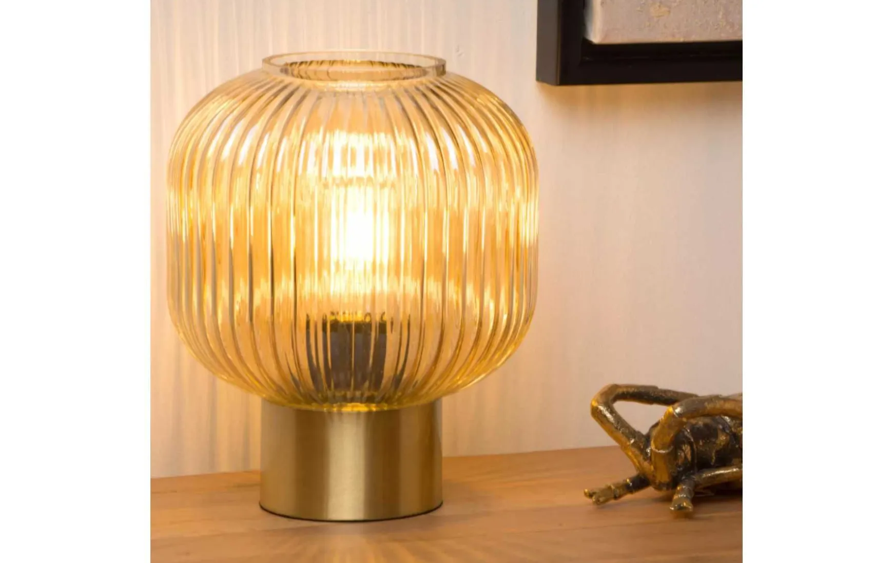 Bevorzugen Sie einen kleinen und feinen Retro-Touch in Ihrem Interieur? Die bernsteinfarbene Kugel aus hochwertigem Glas steht auf einem eleganten goldenen Metallfuß. Maloto passt in jeden Schrank – vom Wohnzimmer bis zum Esszimmer. Oder warum nicht als Nachtlicht? Die Stoffschnur ist mit einem Schalter ausgestattet, der das Ein- und Ausschalten der Tischlampe erleichtert.